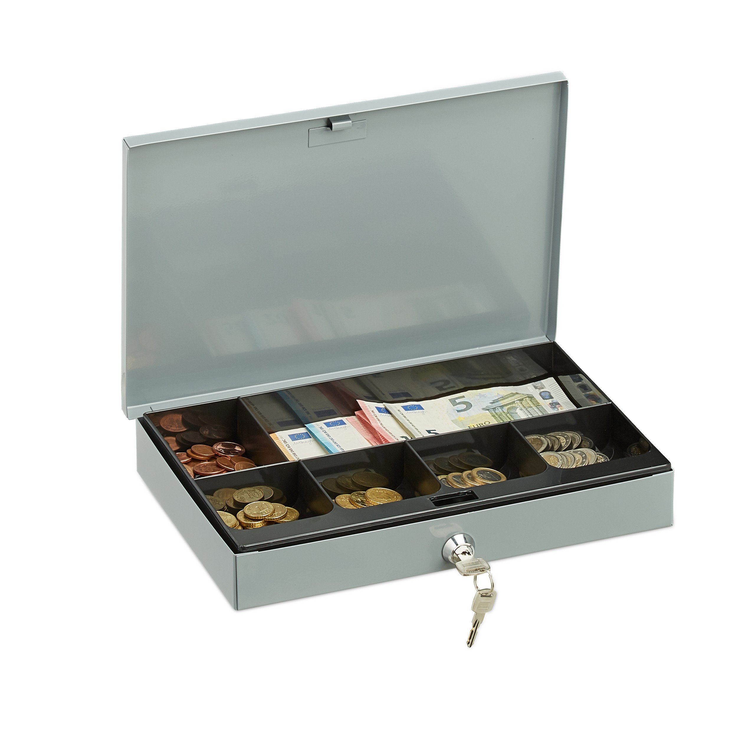 Praktische Geldaufbewahrung zum Abschließen - Verschließbare Geldkasse zur sichereren Verwahrung von Geld mit Ersatzschlüssel - Einsatz für Münzen und Scheine zum schnellen Einsortieren und Entnehmen - Durch flache Bauweise können Sie die Kasse in fast allen Schubladen verstauen - Simples und sicheres Verstauen von Dokumente wie Ausweis und Reisepass - Stabile Schließkasse aus nahtlos gezogenem Stahl mit Pulverbeschichtung