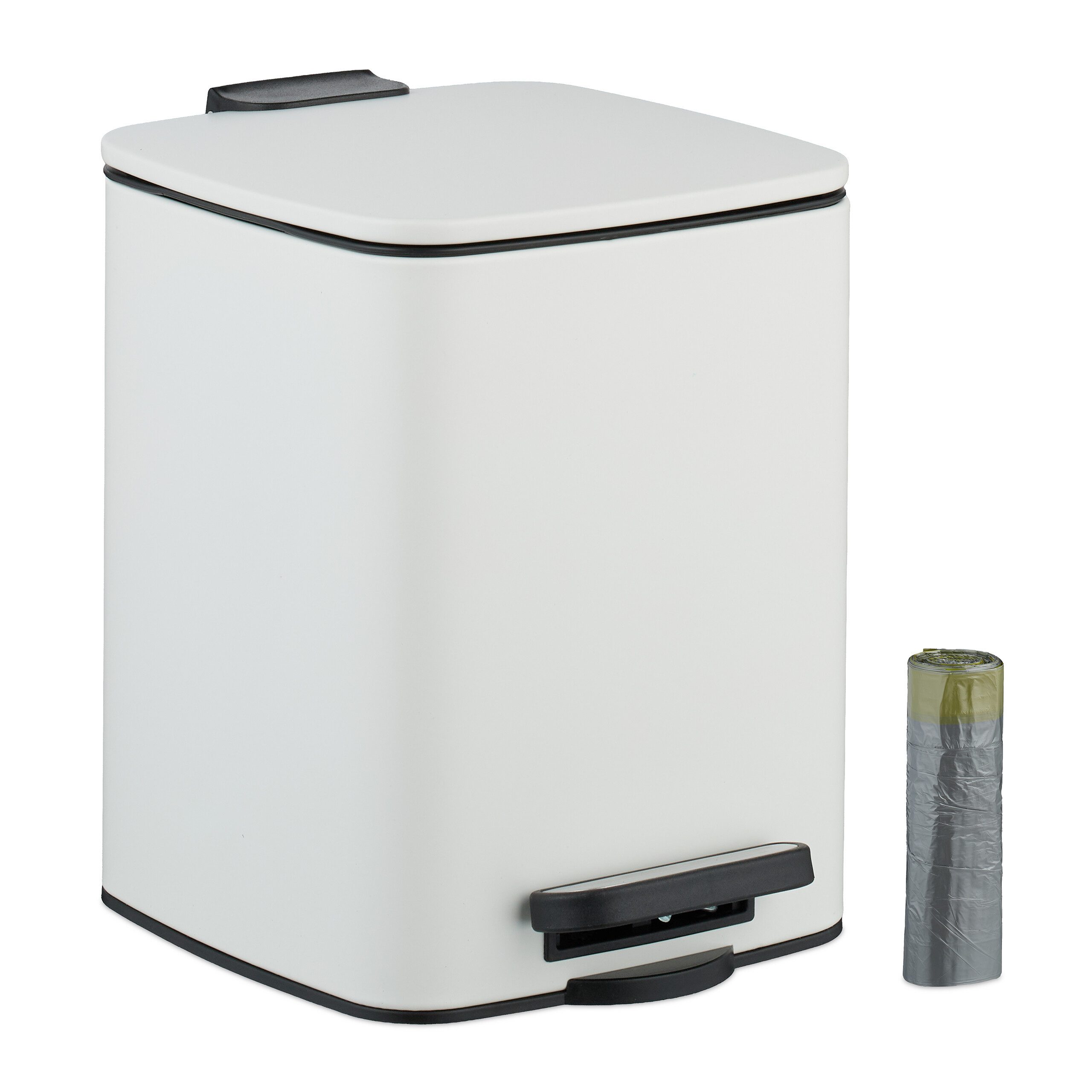 Eckiger Hygieneeimer mit Absenkautomatik - Für Hygieneabfall im Badezimmer, Gäste-WC oder am Schminktisch - Trittpedal für freihändiges Öffnen und Schließen des Toiletteneimers - Deckel schließt dank Softclose-Funktion besonders sanft und leise - Entnehmbarer Inneneimer erleichtert das Entleeren - Inkl. Müllbeutel - Mit rückseitiger Griffmulde zum unkomplizierten Tragen des Mülleimers - Moderner Tretmülleimer mit Metallkorpus setzt dekorative Akzente