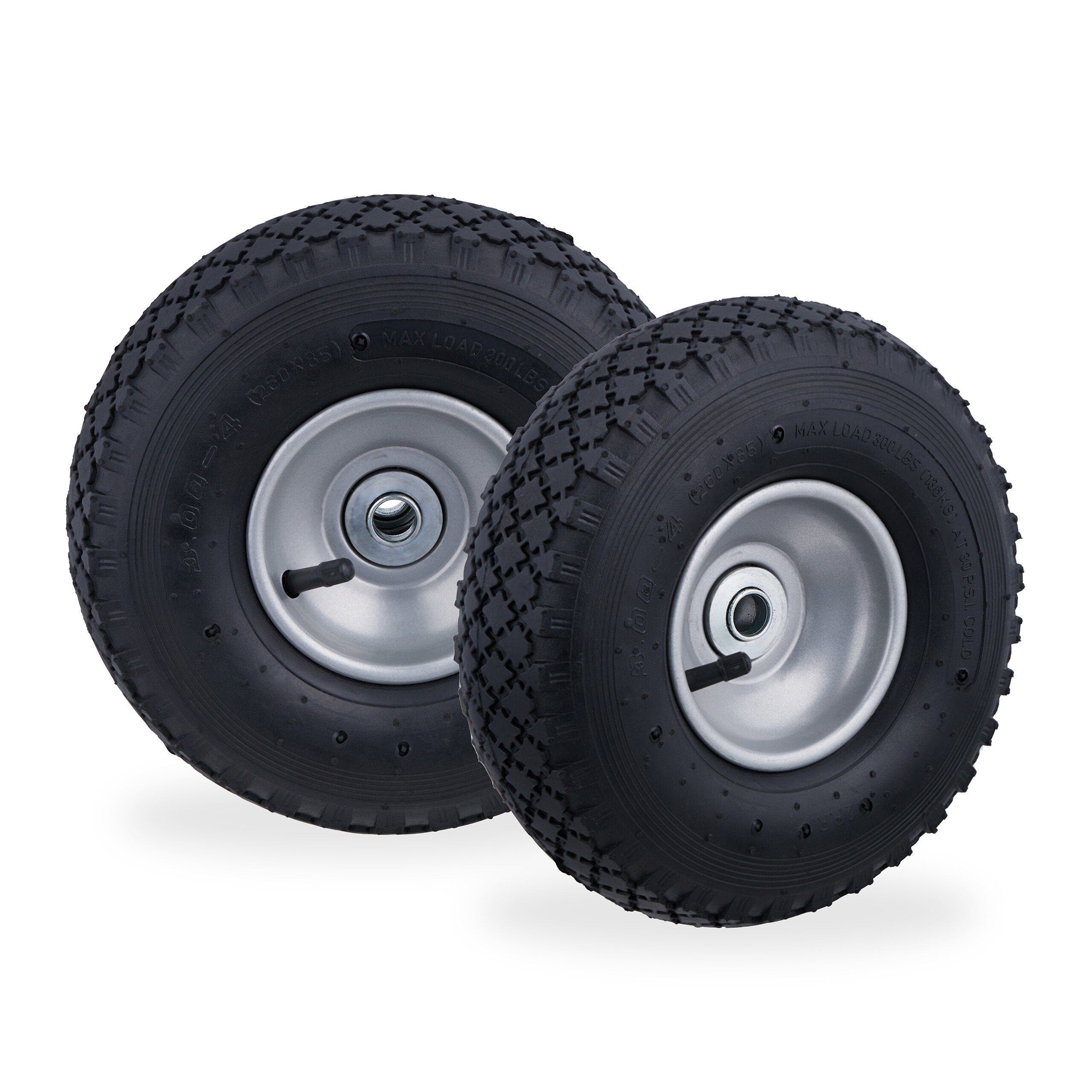 Benötigen Sie neue Räder für Ihre Sackkarre, holen Sie sich mit den Ersatzreifen 3.00-4 luftbereifte Räder für besten Fahrkomfort. Selbst schwere Lasten lassen sich dank der Gummiräder mit Kugellager mit Leichtigkeit transportieren. Das Komplettrad ist durch seine Luftbereifung mit Stahlfelge nicht nur wendig sondern federt auch Stöße gut ab. Die profilierte Lauffläche erleichtert das Schieben der Karre auch auf unebenem Boden. Das Aufpumpen des belastbaren Rads geht mit dem Autoventil schnell und einfach.