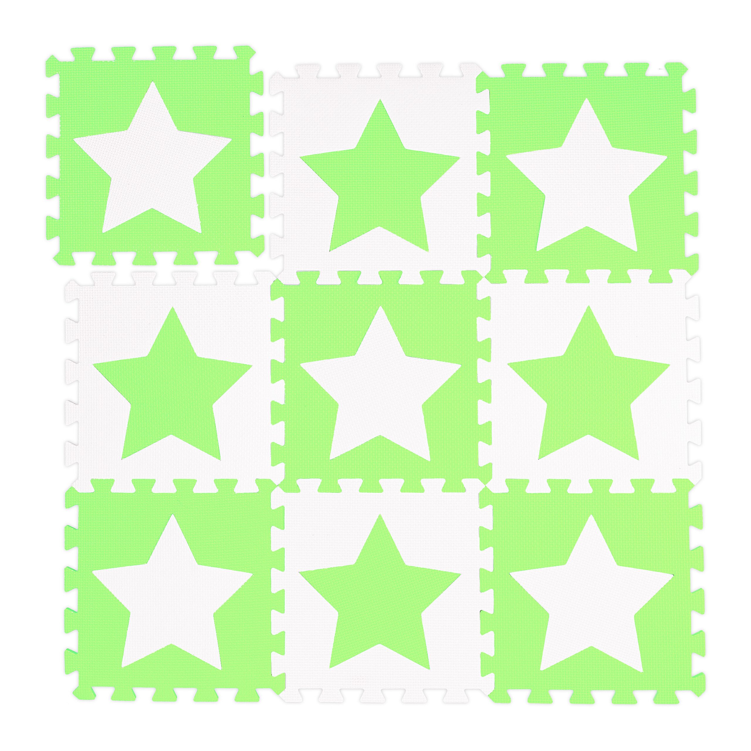 Spielspaß für die Kleinen garantiert der weiche Kinderspielteppich mit Stern-Motiv zum Puzzeln. Die flexibel zusammensetzbare Spielunterlage besteht aus 9 EVA-Schaumstoffmatten. Die bequeme Krabbelmatte ist eine stoßdämpfende Unterlage für Babys und Kinder. Die zweifarbigen Matten sind pflegeleicht und unbedenklich. Die herausnehmbaren Sterne bieten besonders Kleinkindern ein haptisches Erlebnis. Säuglingen bietet die Babymatte einen griffigen Untergrund für erste Krabbelversuche.
