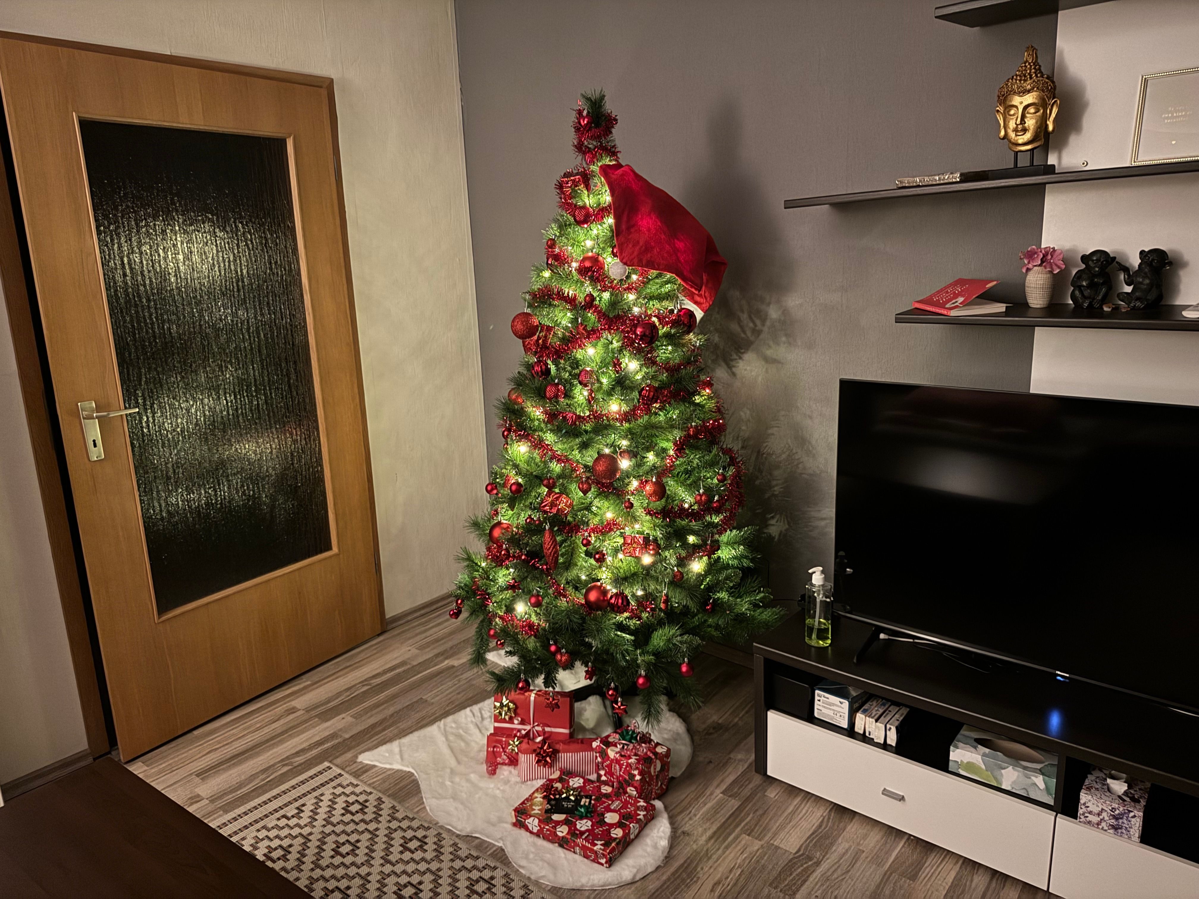 Man sieht nicht das der Baumschmuck aus Plastik ist !