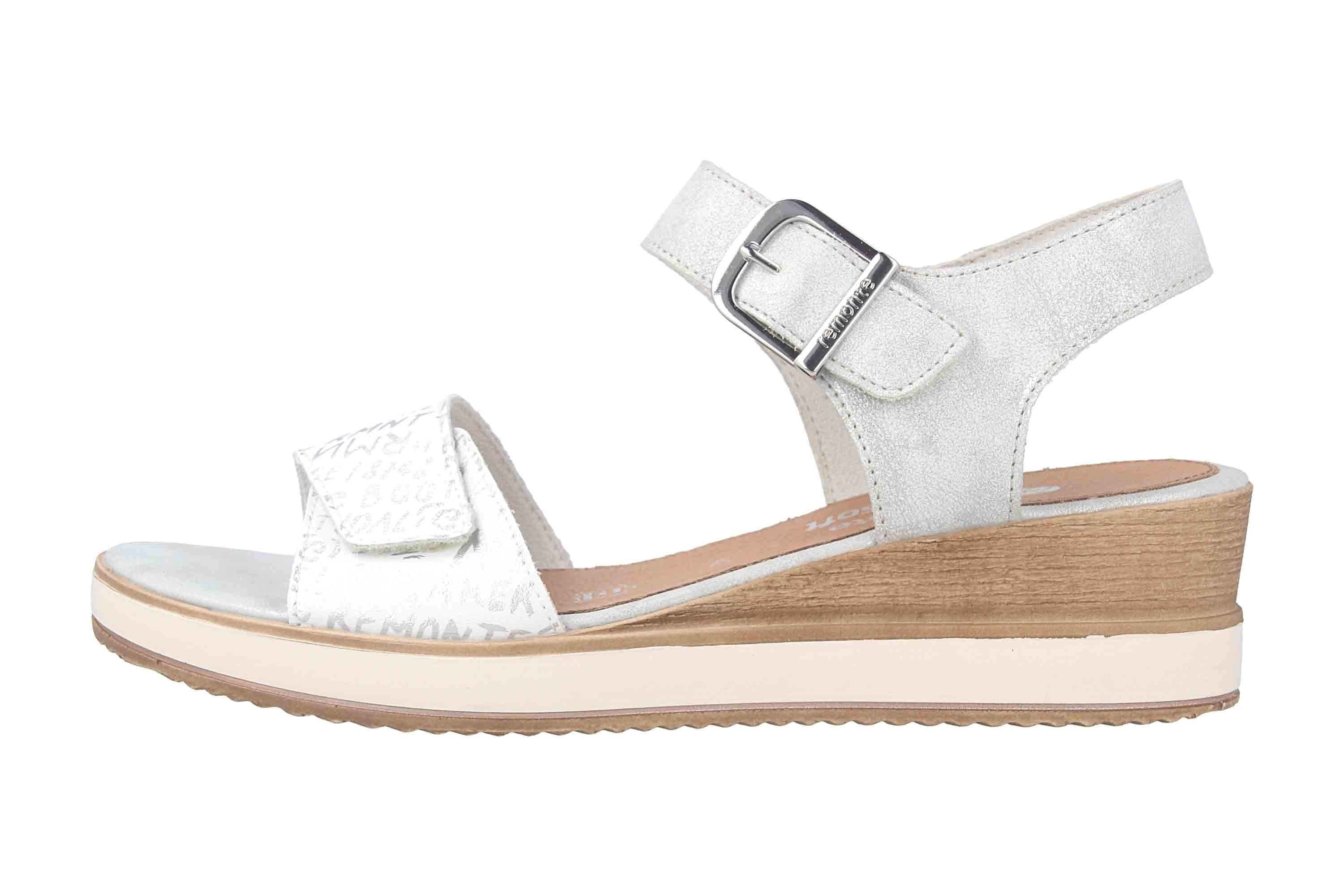 Bei diesem formschönen Schuh der Marke Remonte handelt es sich um ein Modell aus der Kategorie Sandalen. Diese Damenschuhe in der Farbe Silber überzeugen durch ein klares Design und unterstreichen die aktuelle Schuhmode. Große Schuhe von Remonte lassen sich perfekt mit dem urbanen Modegeist kombinieren und verleihen jedem modernen aber auch einem klassisch-sportivem Outfit den passenden Schliff. Das Außenmaterial bei diesem Schuh, Modell D6455-90, wurde aus Glattleder hergestellt, als Innenmaterial wurde Textil verwendet. Bei diesen formschönen Damenschuhen kann als Weite F-Weite berücksichtigt werden. Die PU-Sohle sorgt jederzeit für einen guten Auftritt.