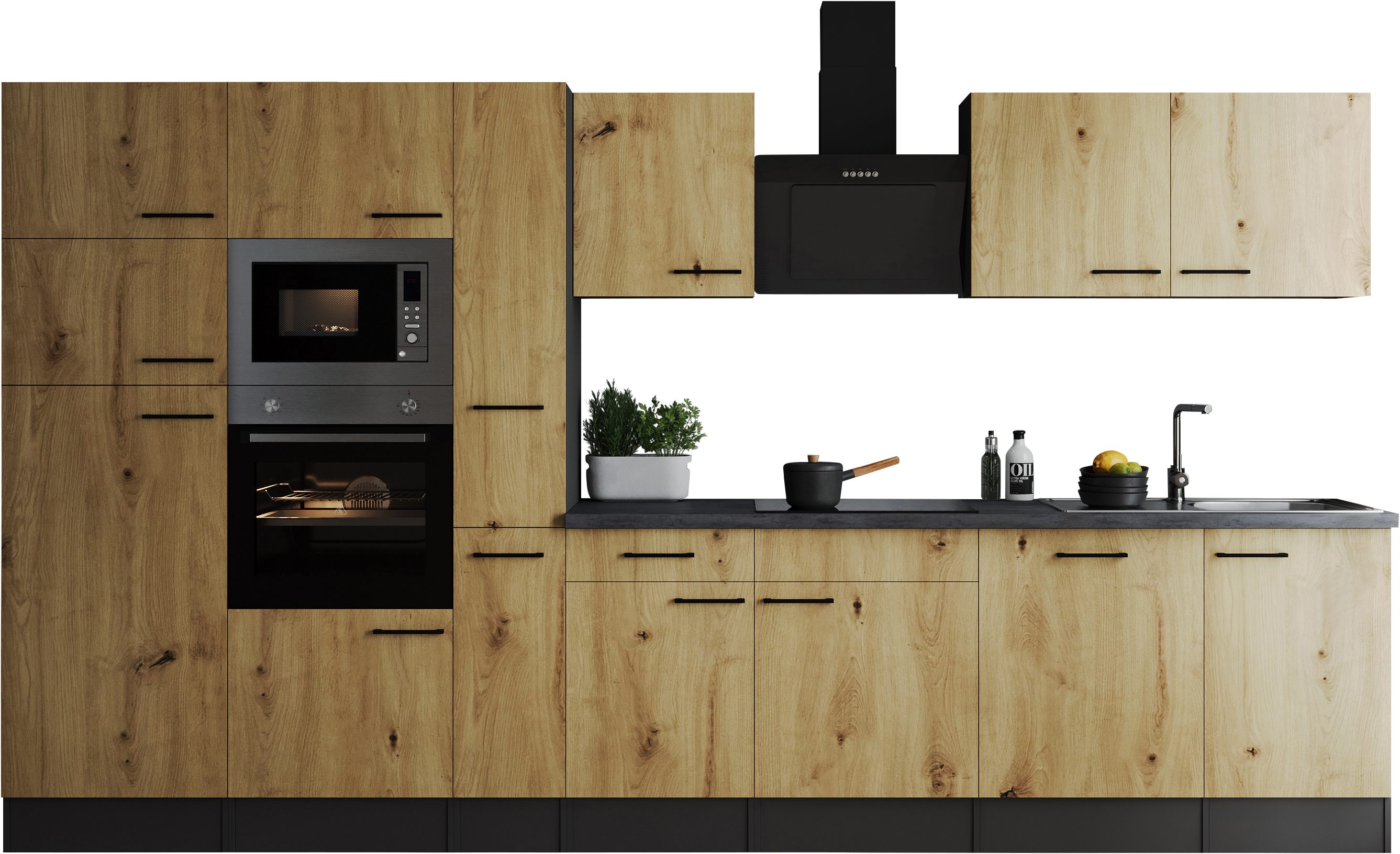 | Ausstattung | Durchgehende Arbeitsplatte Metallgriffe Schubkästen mit Soft-Close-Funktion Seitenverkehrt stellbar Sockelhöhe nicht verstellbar inkl. Edelstahl-Einbauspüle, mit Abtropffläche |
