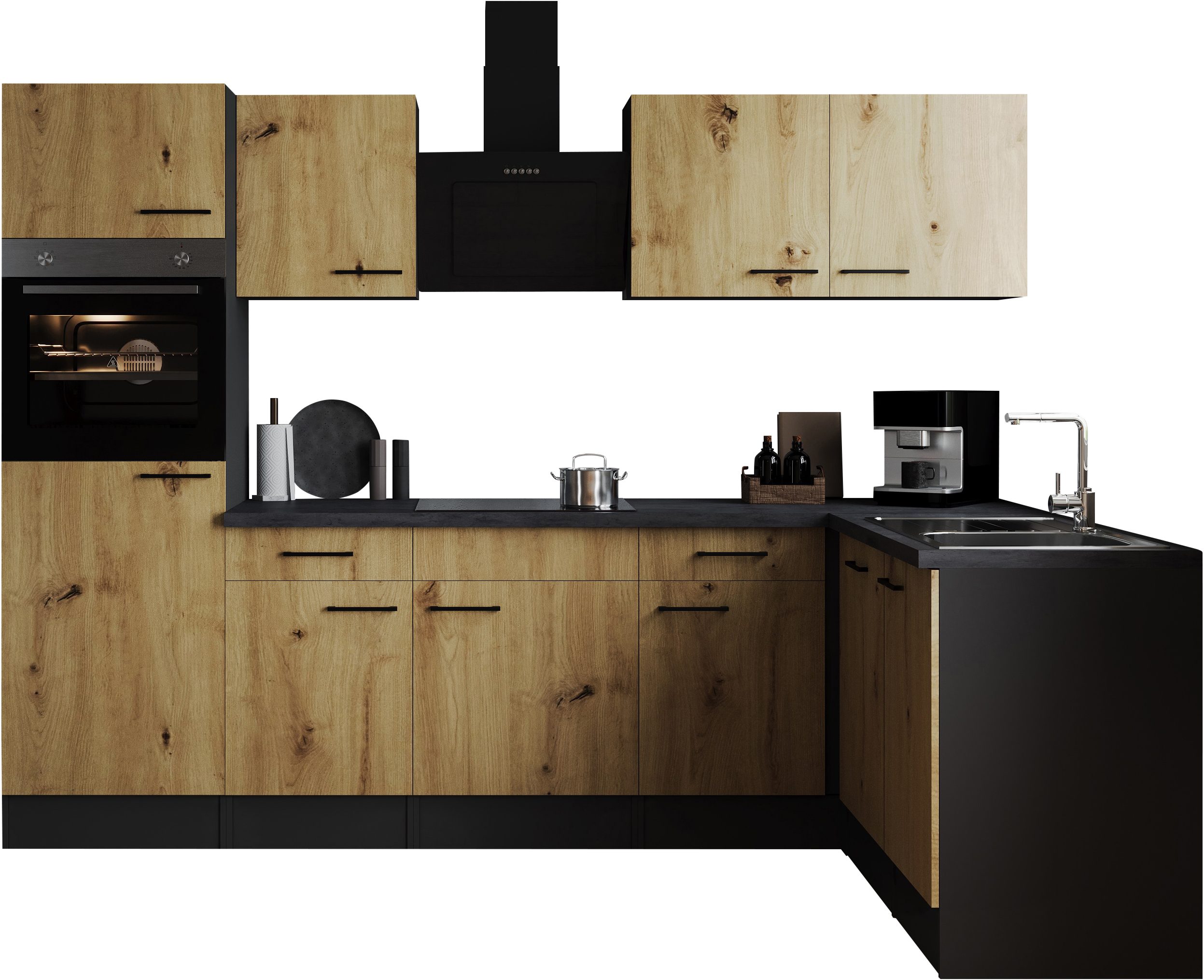 | Ausstattung | Durchgehende Arbeitsplatte Metallgriffe Schubkästen mit Soft-Close-Funktion Seitenverkehrt stellbar Sockelhöhe nicht verstellbar inkl. Edelstahl-Einbauspüle, mit Abtropffläche |