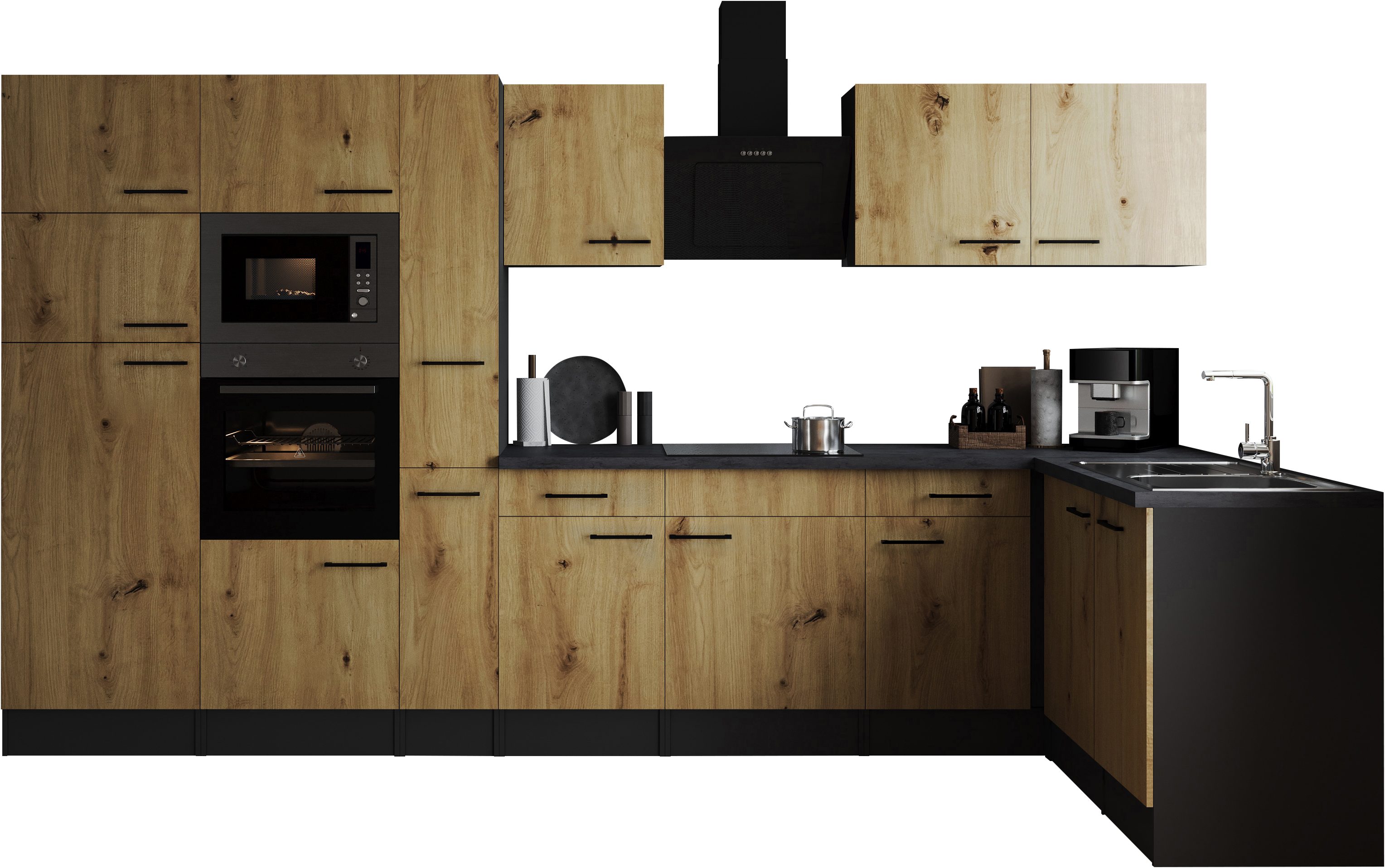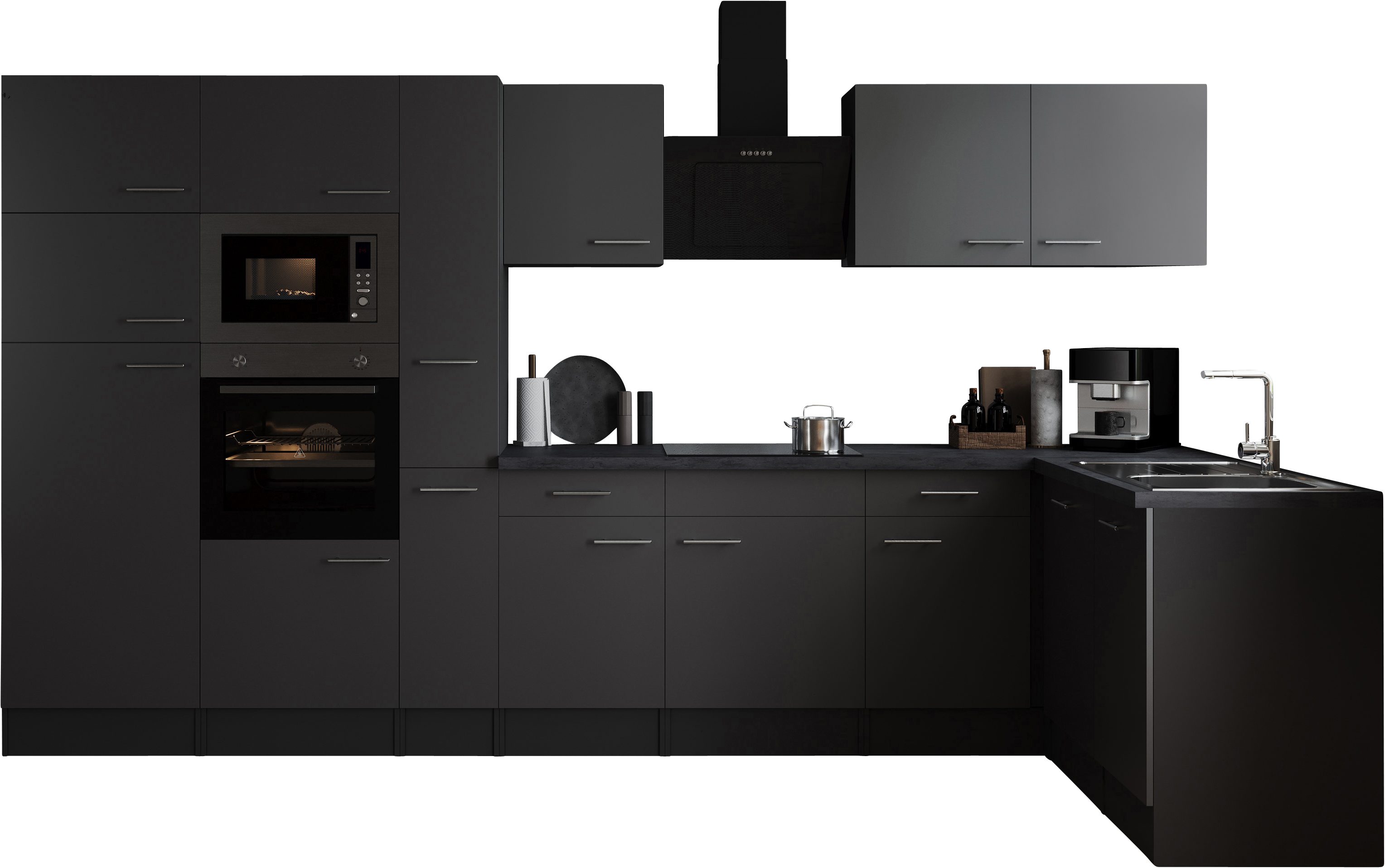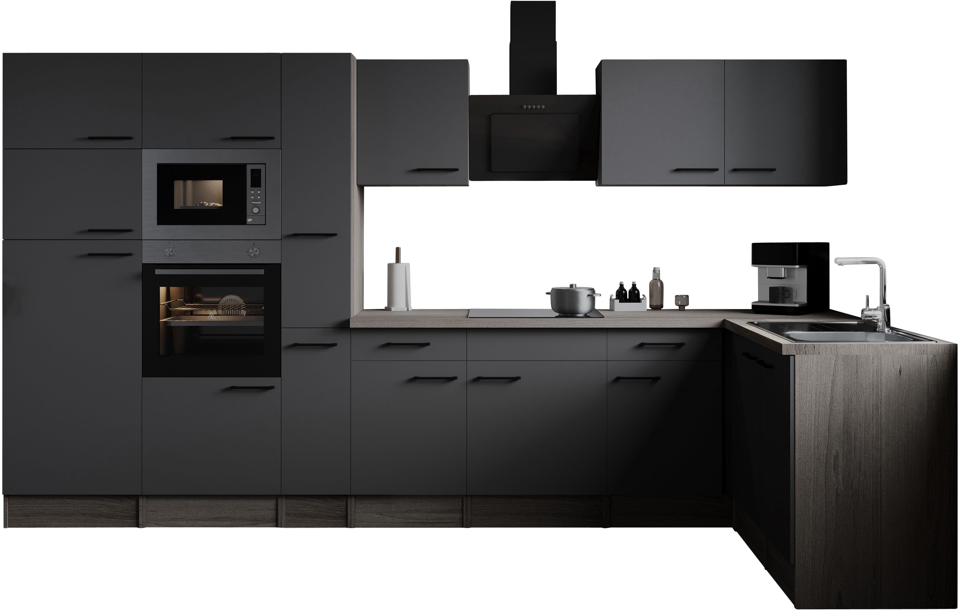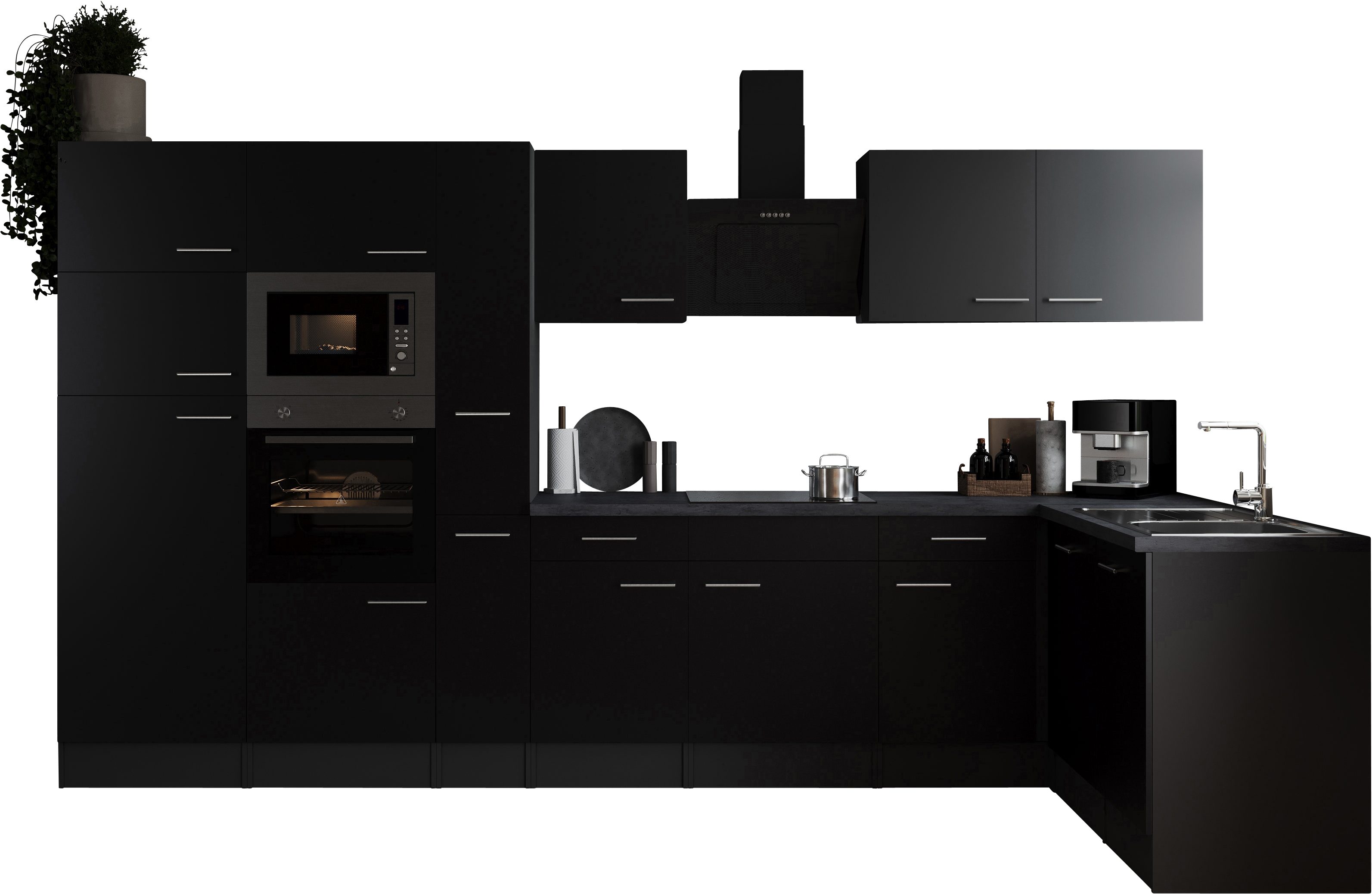 | Ausstattung | Durchgehende Arbeitsplatte Metallgriffe Schubkästen mit Soft-Close-Funktion Seitenverkehrt stellbar Sockelhöhe nicht verstellbar inkl. Edelstahl-Einbauspüle, mit Abtropffläche |