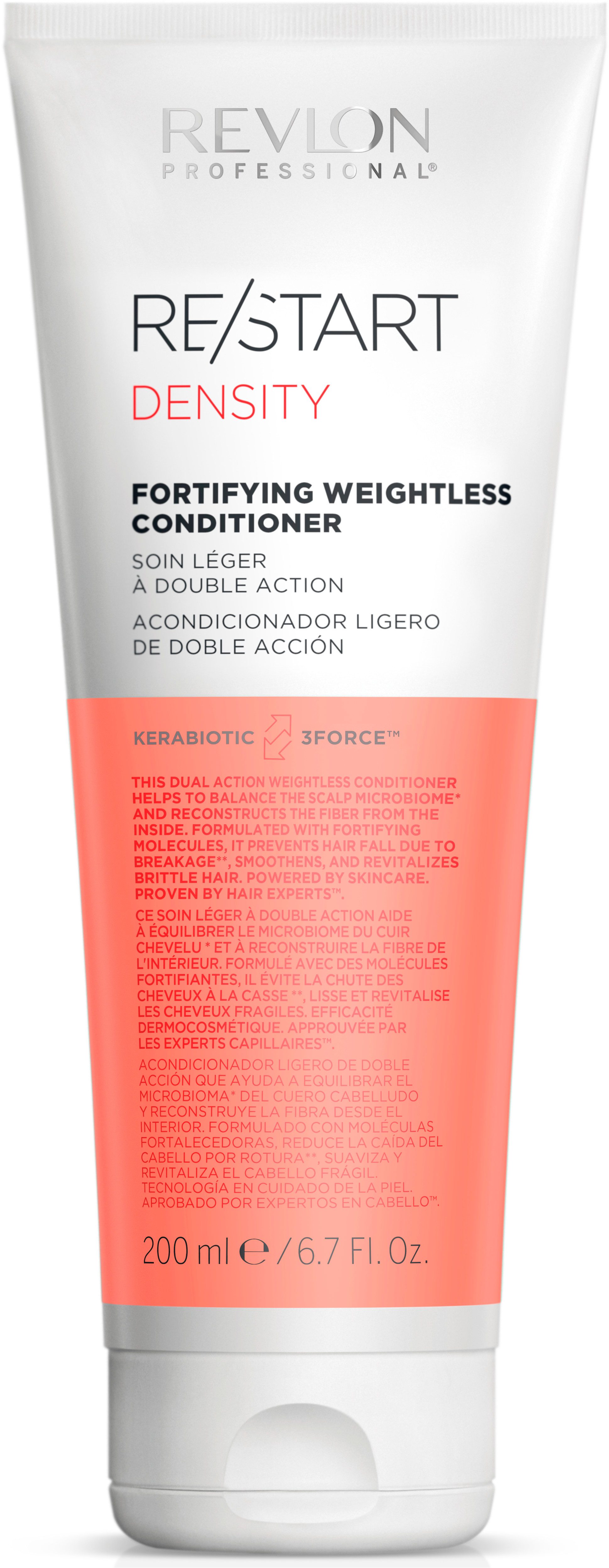 RE/START Fortifying Conditioner (200 ml): Mit diesem stärkenden Conditioner verwöhnen Sie Ihr Haar mit einem doppelwirksamen Haar- und Kopfhautsystem. Das KERABIOTIC SYSTEM kombiniert bewährte Wirkstoffe der Hautpflege mit modernsten Haarpflege-Lösungen. Die besondere Formel des Conditioners verleiht ein angenehmes Haargefühl und sorgt in Kombination mit anderen RE/START Produkten für eine gepflegte, vitale Kopfhaut. Der RE/START Fortifying Conditioner ist für schwaches, feines Haar geeignet und perfekt für alle, die Haarausfall durch Haarbruch vermeiden möchten. Die pflegende Spülung sorgt mit stärkenden Molekülen für die Wiederherstellung der Haarfaser und revitalisiert das Haar. Sorgen Sie für ein natürliches Gleichgewicht des Kopfhaut-Mikrobioms und erhalten Sie jeden Tag glänzendes Haar. Das Produkt in das handtuchtrockene Haar einmassieren, 2 - 3 Minuten einwirken lassen und gründlich ausspülen. *in Verbindung mit dem RE/START Shampoo. RE/START – RETHINK HAIRCARE. Das Produkt besitzt folgende Eigenschaften: » stärkender Conditioner mit Zweifachwirkung » Schutz und Hilfe bei Haarausfall durch Haarbruch » extra Pflege und Glanz » 200 ml Flasche » von Haarexperten weiterentwickelt » speziell für schwaches, feines Haar. Es ist Zeit für einen Neustart – mit RE/START – der Start für modernste Haarpflege-Technologien. Basierend auf bewährter Hautpflege sind alle Haarpflegeprodukte von RE/START von Haarexperten weiterentwickelt und speziell auf die besonderen Bedürfnisse verschiedener Haartypen zugeschnitten. Eine vitale, gesunde Kopfhaut ist immer eine Voraussetzung für schönes Haar. So wird zum einen das Kopfhaut-Mikrobiom in ein natürliches Gleichgewicht gebracht, zum anderen werden die Haarfasern versiegelt und spezifische Bedürfnisse des Haares behandelt: Feuchtigkeit, Farbschutz, Aufbau und Volumen. Mit RE/START gehen auch Sie neue Wege und wagen einen Neustart für Ihr Haar.