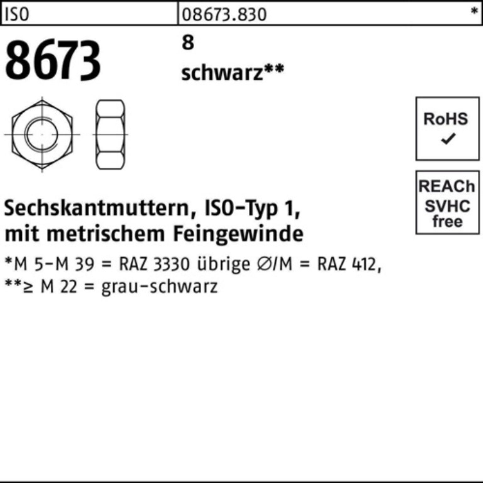Muttern 100er Pack 086738300720600 Sechskantmutter ISO 8673 M 72 x 6 8 schwarz