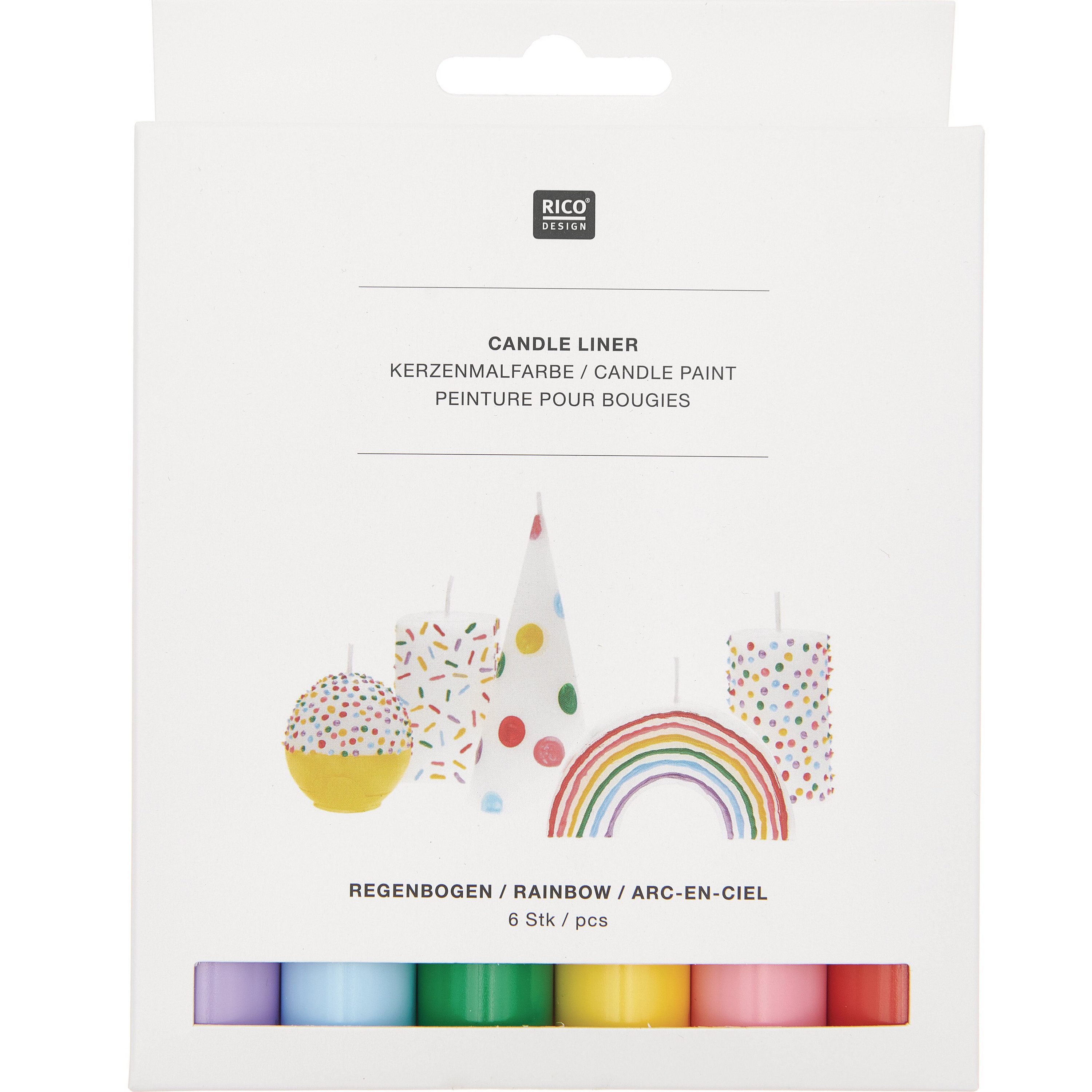Mit dem Candle Liner Set 'Rainbow' verleihst du deinen selbstgemachten Kerzen eine einzigartige Note. Die feinen Malspitzen der Stifte ermöglichen es dir, mit einer weichen Wachsmischung in sechs Regenbogenfarben kreative Muster und Motive zu gestalten. Ob einfache Punkte, Streifen oder aufwändigere Designs wie Blumen und Schriftzüge – deiner Kreativität sind keine Grenzen gesetzt. Die Kerzenmalfarben schmelzen beim Abbrennen der Kerzen sanft mit, sodass die Motive harmonisch in das Kerzenlicht übergehen. Das Set enthält sechs Stifte à 30 ml, die dir vielfältige Gestaltungsmöglichkeiten bieten. Entdecke die Freude am Gestalten und mache aus jeder Kerze ein Kunstwerk.