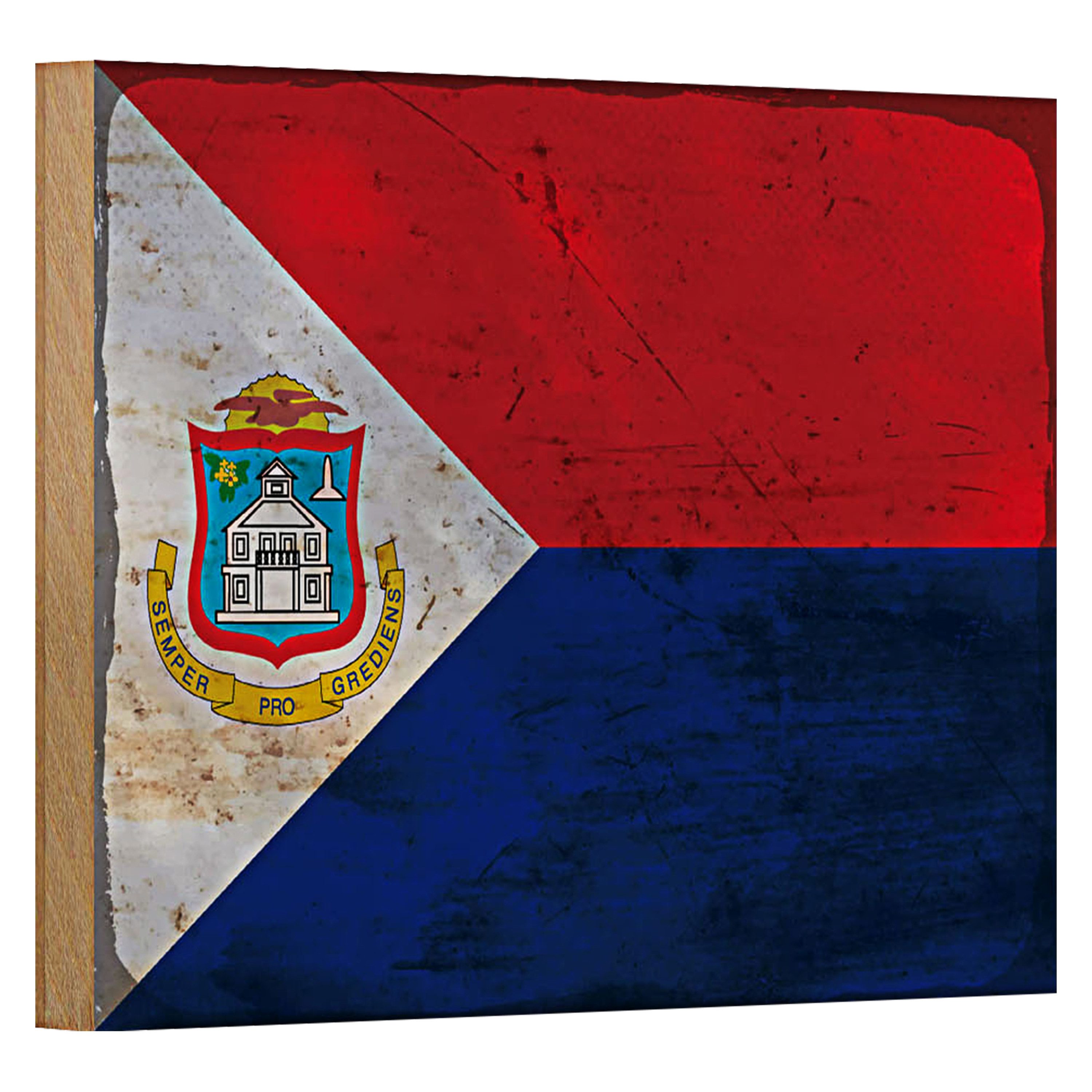 Dieses Vintage-Holzschild mit der Flagge von Sint Maarten ist ein wahrer Blickfang.