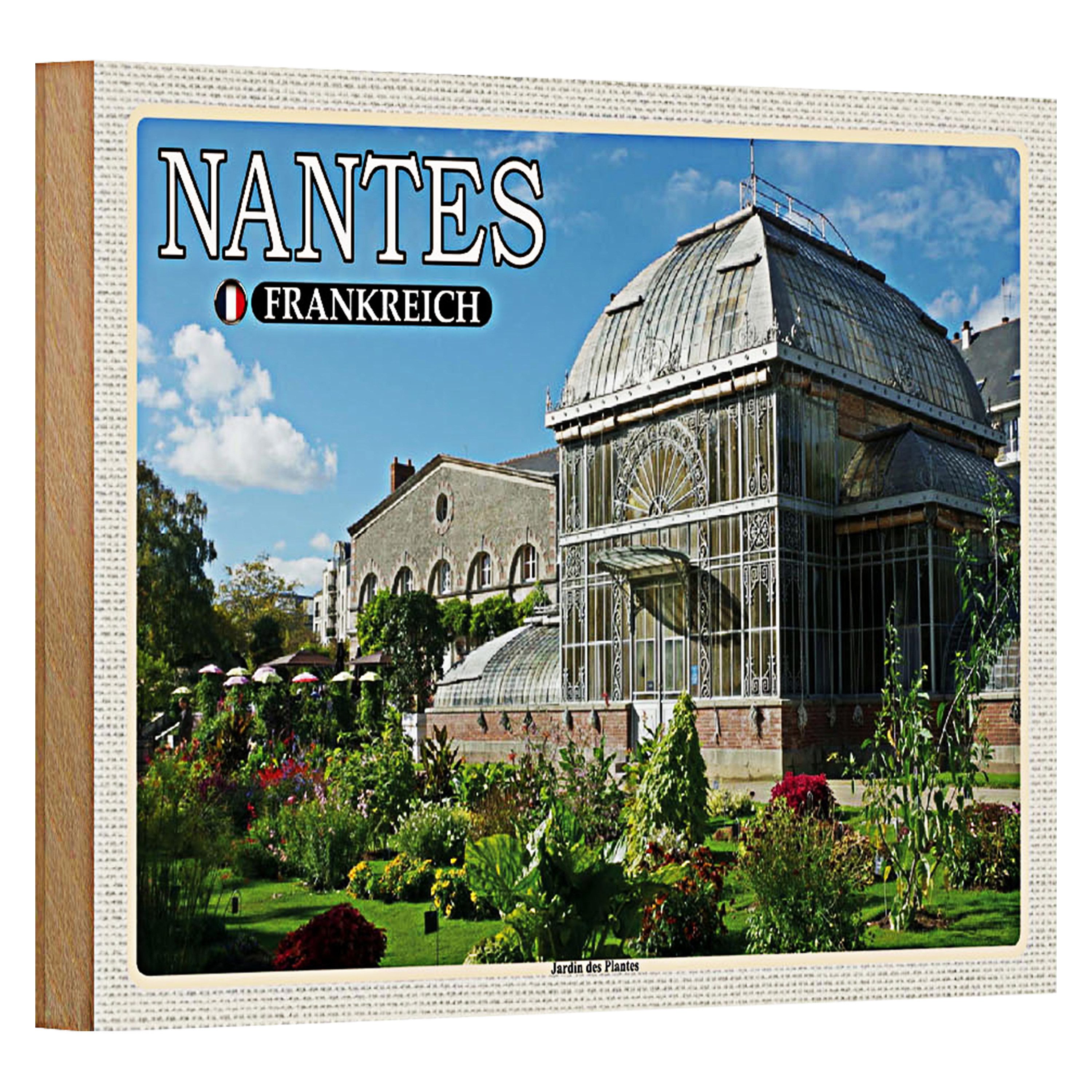 Erleben Sie die Pracht von Nantes mit diesem charmanten Holzschild, das den berühmten Jardin des Plantes zeigt.