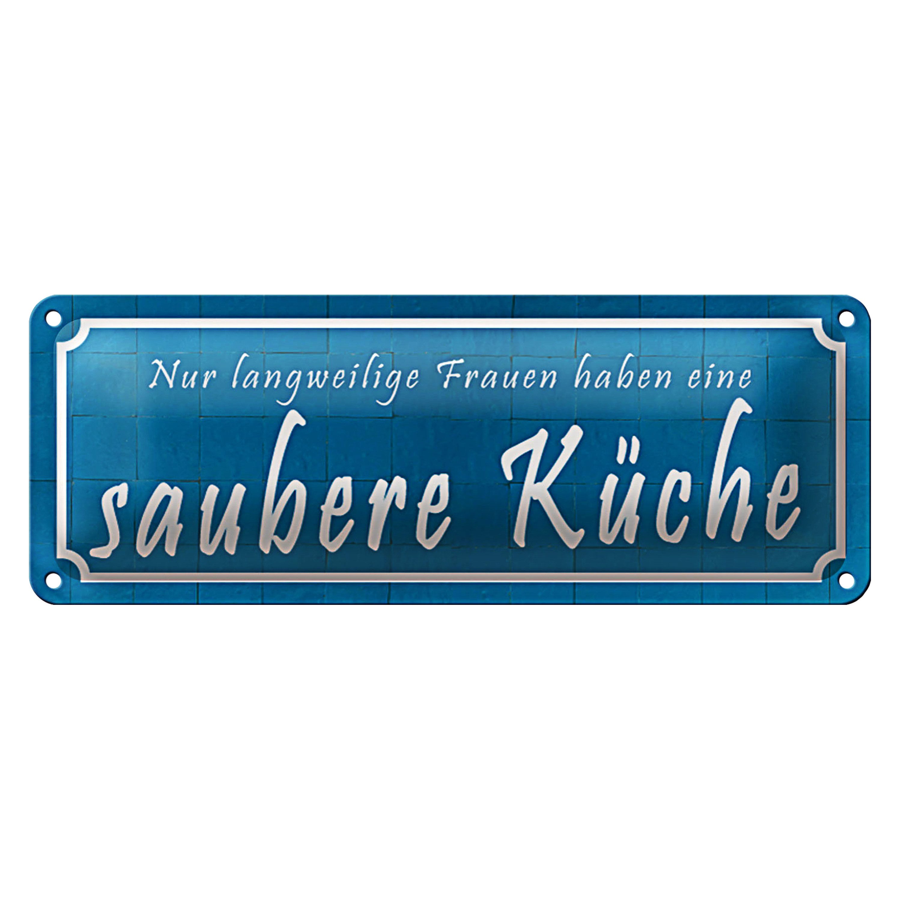 Metallschild Blechschild Spruch 27x10cm langweilige Frauen saubere Küche Dekoration