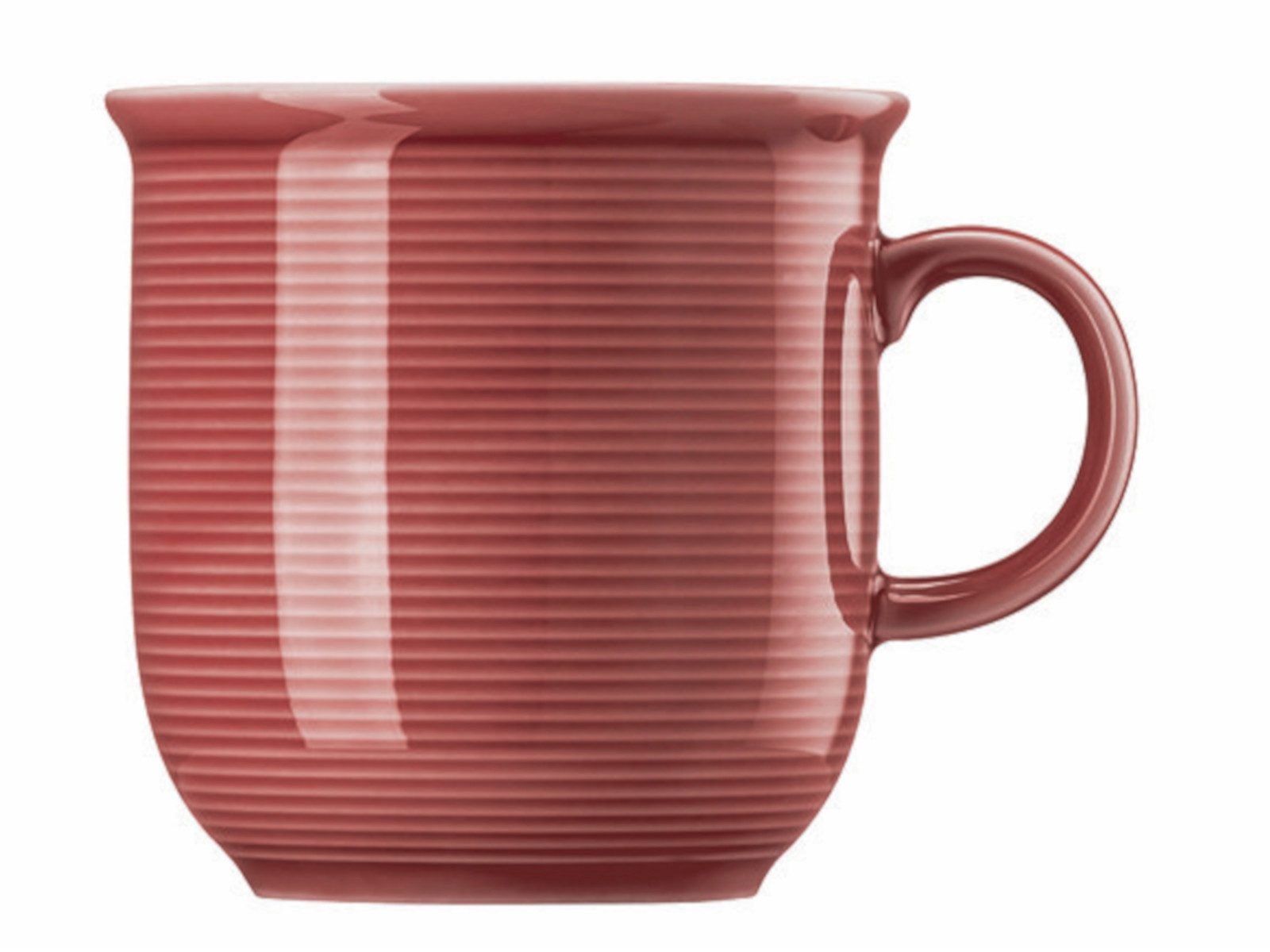 Der Becher mit Henkel und einem Fassungsvermögen von 0,36 l aus der Serie Thomas Trend Colour in der Farbe Chilli Red besteht aus hochwertigem Porzellan und fällt durch seine kräftige rote Glasur sofort ins Auge. Die feine, für die Kollektion typische Rillenstruktur verleiht ihm eine moderne und markante Optik. Dank seines großzügigen Volumens eignet sich der Becher ideal für Kaffee, Tee oder andere Heißgetränke und liegt durch seine Form angenehm in der Hand. Er ist spülmaschinengeeignet und mikrowellengeeignet und damit bestens für den täglichen Gebrauch geeignet.