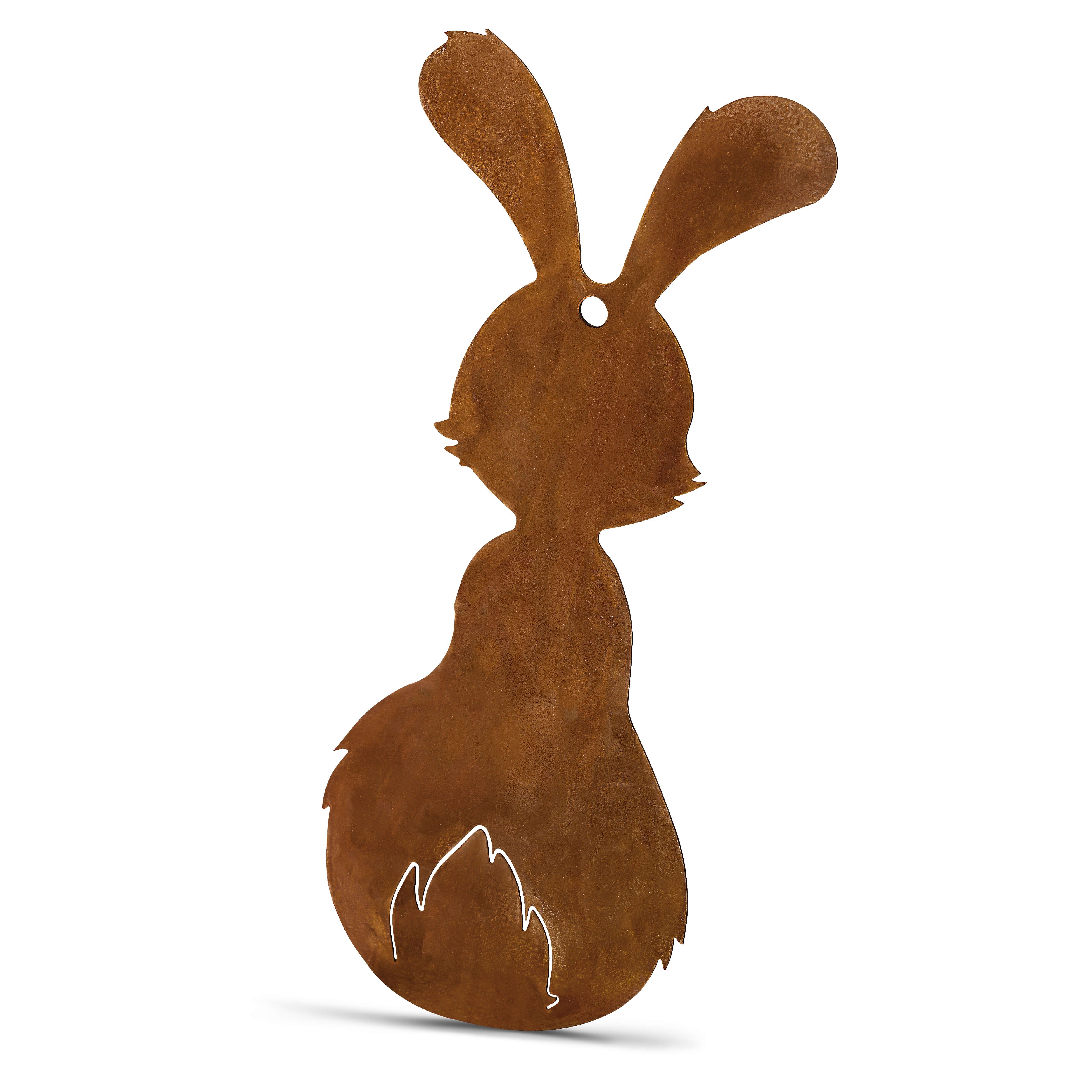 | Ergänzende Maßangaben | Hase mit 25 cm Höhe steht auf runder Ø 9 cm Bodenplatte, Hase mit 30 cm Höhe steht auf runder Ø 10 cm Bodenplatte, Hase mit 15,5 cm Höhe hat eine Lochbohrung zum Aufhängen |