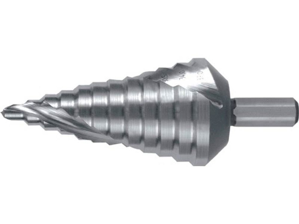 Stufenbohrer Bohrber.6-37mm HSS Spiralnut Z.2 Stufen 12 RUKO HSS · spiralgenutet · mit Kreuzanschliff · 2 Schneiden · Spitzenwinkel 118 ° · Stufenwinkel 90 ° · Schaft mit 3 Spannflächen Weitere technische Eigenschaften: · Spitzenwinkel: 118° · Stufenwinkel: 90° · Nut: spiralgenutet · Ø: 6 - 37mm · Schneidenanzahl: 2 · Schneidstoff: HSS