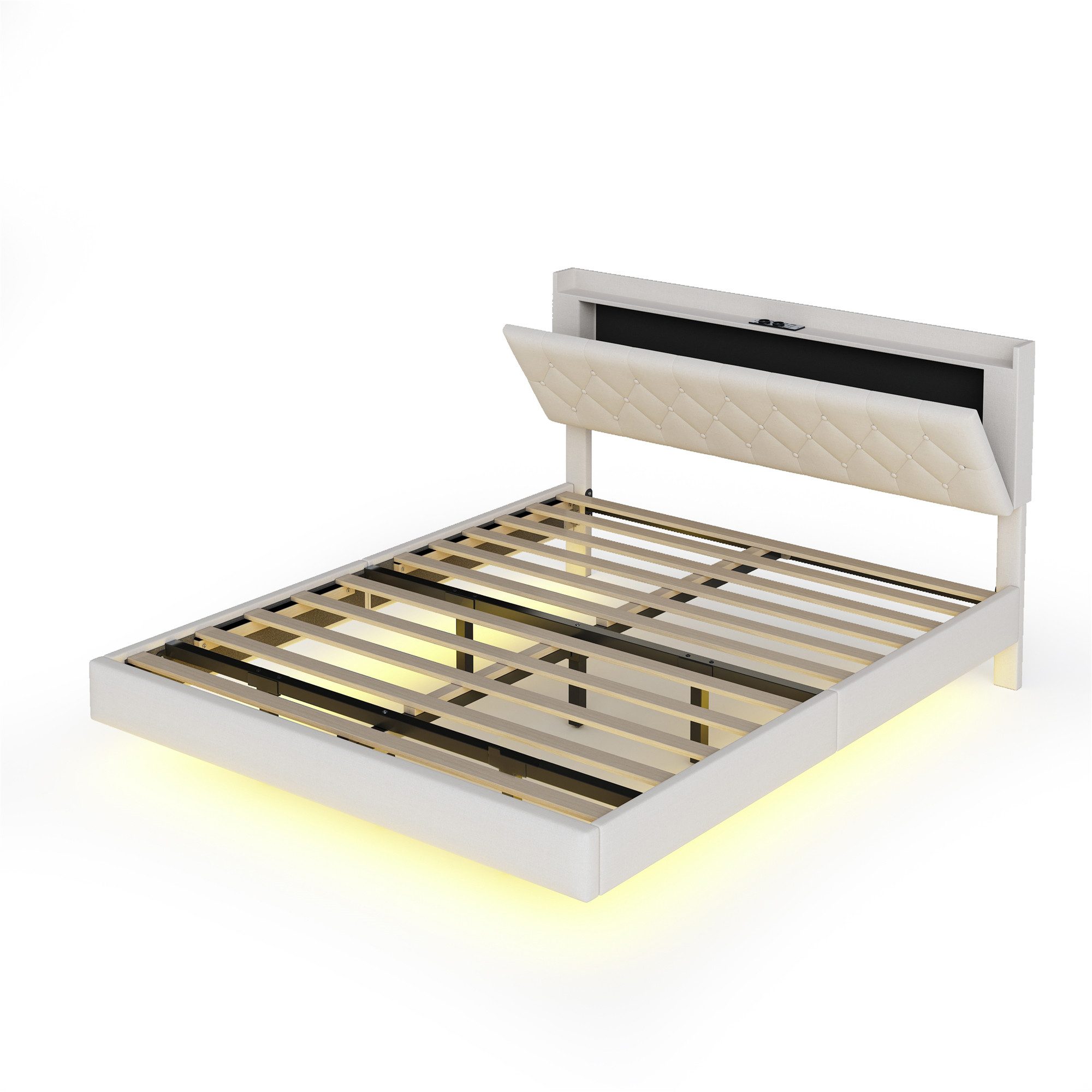 Heben Sie Ihr Schlafzimmer mit unserem luxuriösen LED-Bettgestell auf ein neues Niveau der Raffinesse und des Komforts. Mit feinster Liebe zum Detail gefertigt, bietet dieses Bettgestell nicht nur ein komfortables Schlaferlebnis, sondern integriert auch modernste Funktionen für modernes Wohnen.