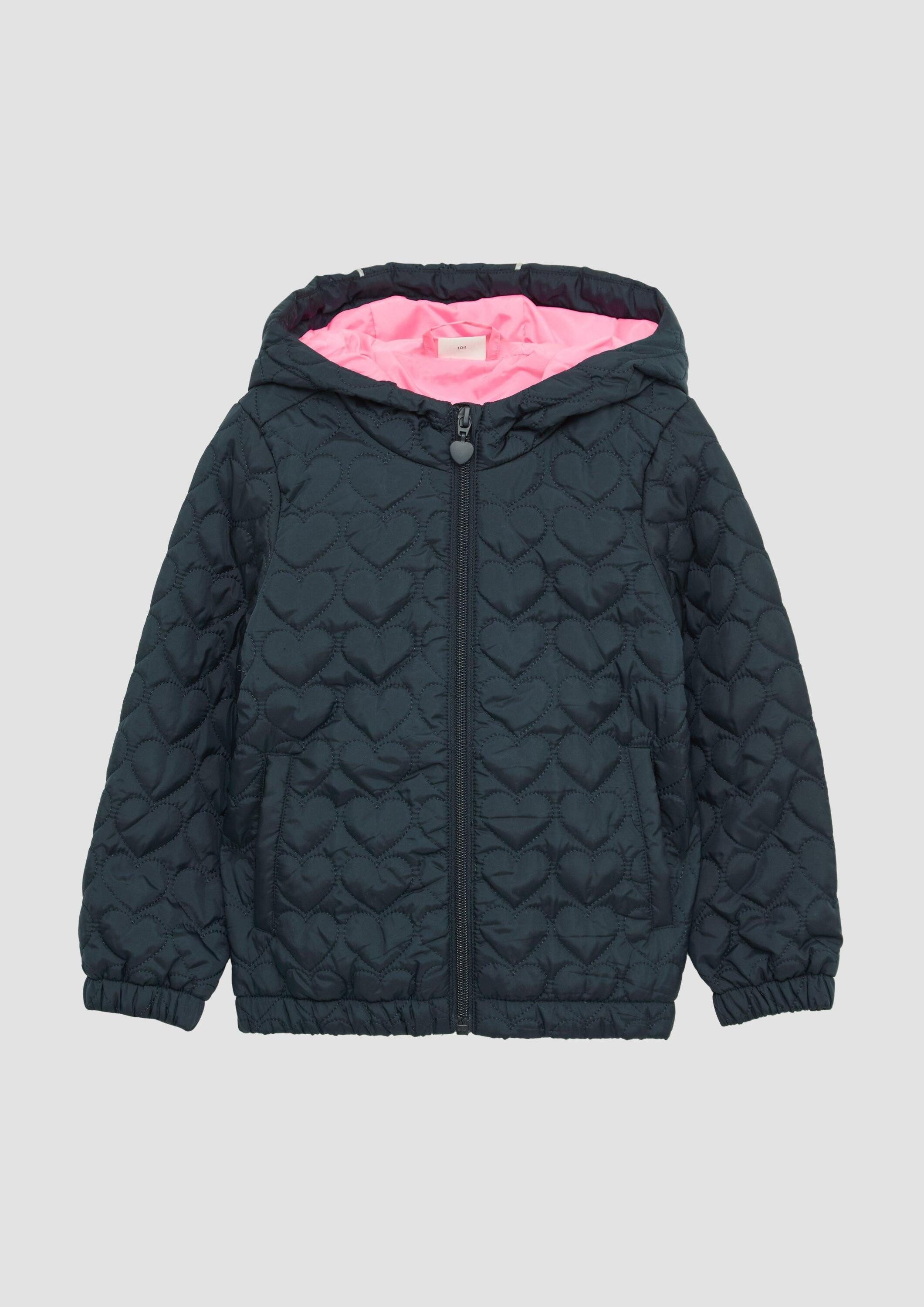 | Schnittform Länge | Leicht wattierte Kapuzenjacke mit Herz-Steppung und dekorativen Reflektor-Details |