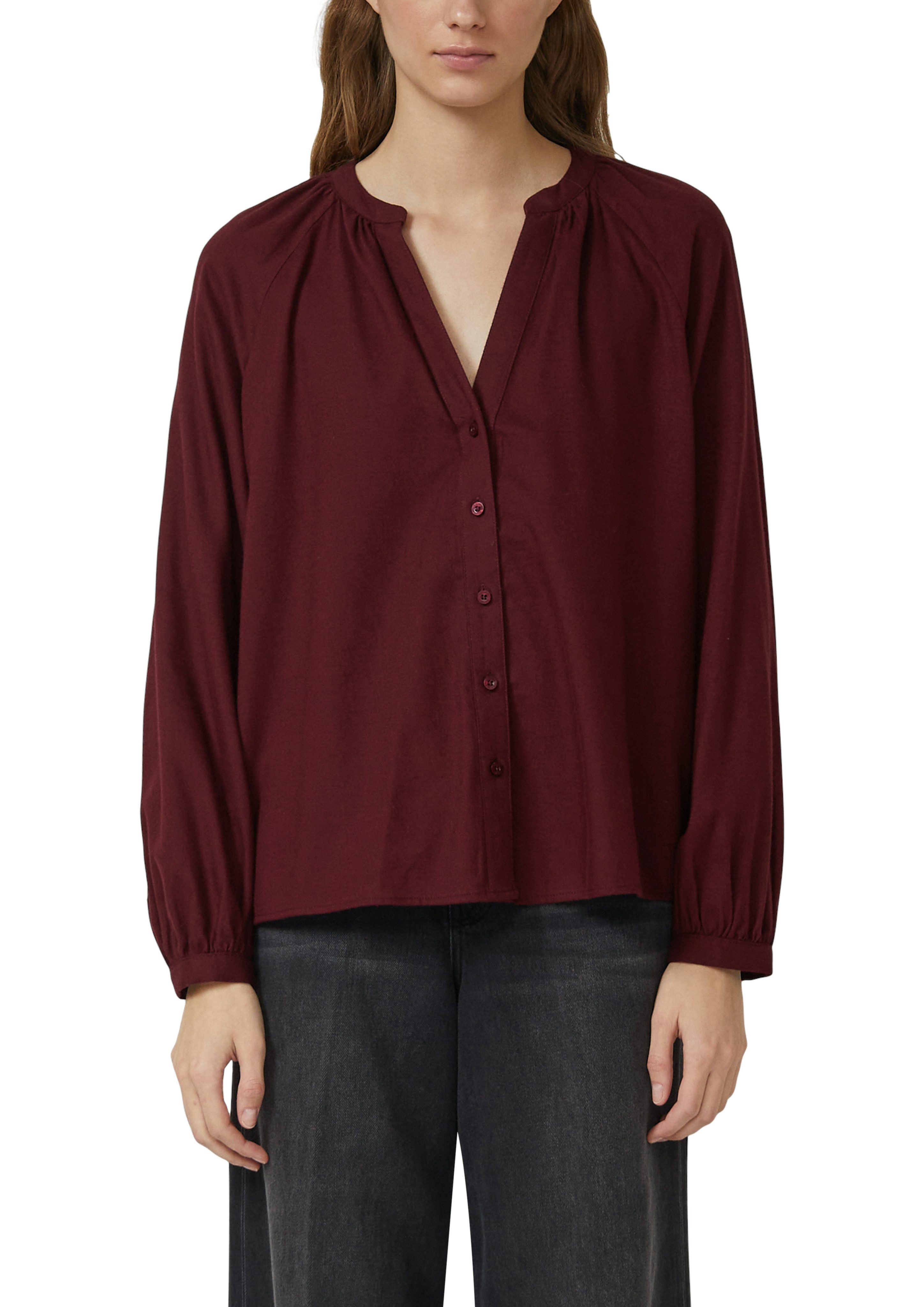 Schau dir die Langarmbluse von s.Oliver mal genauer an. Die langen Ärmel enden in einem elastischen Bund. Diese Bluse hat einen V-Ausschnitt und ist normal sowie locker geschnitten, sodass der Oberkörper locker betont wird.