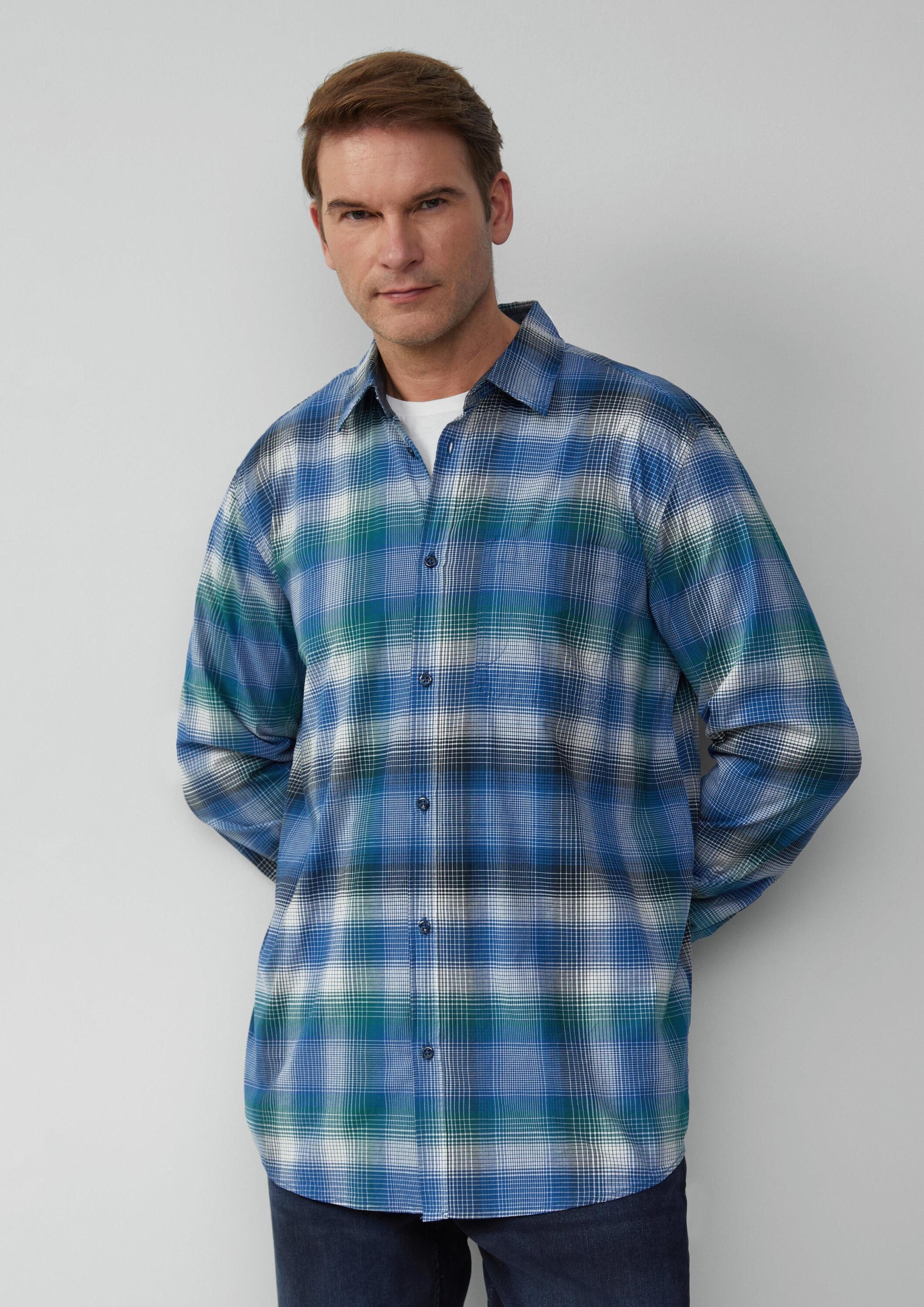 | Schnittform Länge | Regular Fit: Kariertes Hemd aus Baumwollstretch mit Brusttasche |