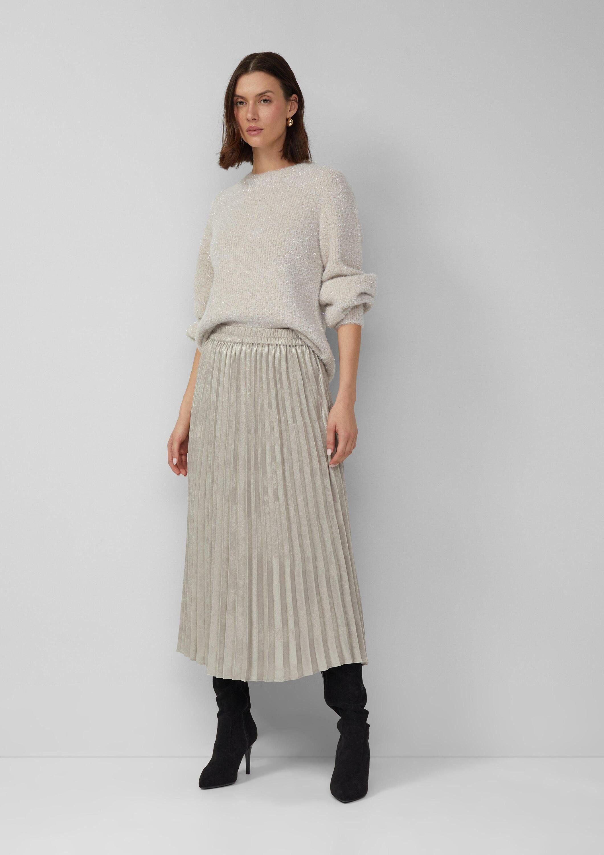 | Schnittform Länge | Schimmernder Plissee-Rock mit Elastikbund in Midi-Länge |