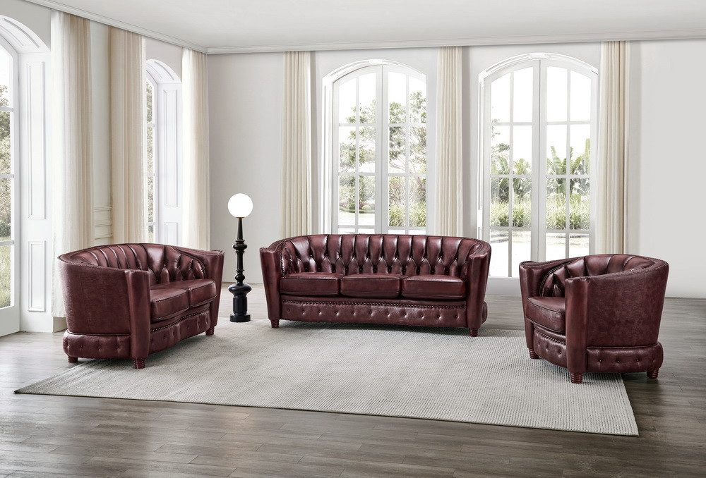 DIESE TRAUM CHESTERFIELD SOFAGARNITUR IST IN DER FARBE BRUSH OF RED (WIE AUF DEM FOTO ABGEBILDET) ZU DIESEM SONDERPREIS AB ENDE DEZEMBER 2025 NOCH EINMAL SOFORT LIEFERBAR!