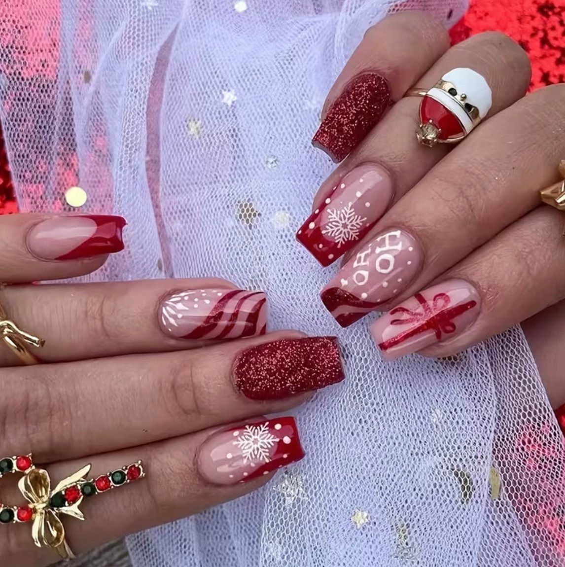 24 Künstliche Fingernägel für Weihnachten - Weinrot Gestreift Quadratisch Party Künstliche Fingernägel, Red Press on Nails Kurz Aufdrückbare Nägel zum Aufkleben für Frauen Nail Art (Weinrot) Verwandeln Sie Ihre Nägel schnell in ein festliches oder elegantes Nageldesign mit unserem 24-teiligen Press-On Nägel Set. Ob Weihnachtsnägel, Glitzer, French Tips, Farbverläufe oder bunte Designs. Diese Fake Nails / Künstlichen Nägel sorgen für brillantes, langlebiges Finish ohne Nagelstudio. Ideal für DIY Maniküre, Party, Alltag oder besondere Anlässe. Einfache Anwendung: Schneiden und formen Sie die Nägel für eine optimale Passform. Reinigen Sie die Naturnägel gründlich von Staub und Öl. Tragen Sie Nagelkleber oder Jelly-Klebebänder auf, setzen Sie die Nägel an und drücken Sie sie 30 Sekunden lang fest. Feilen und formen Sie die Nägel nach Wunsch für ein perfektes Finish. Sofort einsatzbereit: Genießen Sie Ihre stilvollen Weihnachtsmütze Nägel, Fake Nails oder Press On Nägel. Sichere und wiederverwendbare Nägel: Gefertigt aus hochwertigem, umweltfreundlichem ABS-Material sind unsere künstlichen Nägel robust, flexibel und schonend zu Ihren Naturnägeln. Nach dem Entfernen lassen sie sich reinigen und erneut aufkleben - perfekt für wiederholte Anwendungen und wechselnde Designs. Ideal für DIY Nägel, Nagelstudio zu Hause, Nail Art oder als Geschenk für Freundinnen, Familie oder Nail Art Fans. Lieferumfang: 24 x Press On Nägel 24 x Jelly-Klebebänder (1 Blatt) 1 x Mini-Nagelfeile