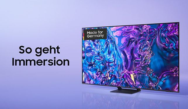 Der GQ65Q70DAT ist ein KI QLED-Fernseher der Marke Samsung. Filme lassen sich auf dem großen 65 Zoll (163 cm) 4K Ultra HD-Bildschirm in hoher Auflösung betrachten. Tauche ins Filmgeschehen ein und verwandle dein Wohnzimmer dank des Sourround-Sounds in dein eigenes Cinéma. Serien und Filme streamen ist dank WLAN kein Problem. Der TV steht außerdem direkt für die Nutzung von Apps zur Verfügung inkl. dem Zugang zu mehr als 900 freien Kanälen, einschließlich Samsung TV Plus Premium-Kanälen. Das Modell lässt dich weitere Geräte wie Spielekonsole, Camcorder & Co. unkompliziert mit dem Fernseher verbinden. Dieses Fernsehgerät passt zu dir, wenn du einen TV suchst, der umfassende Funktionen fürs Internet bietet und dank tollem Smart-TV aus deinem Zuhause ein Kino macht.