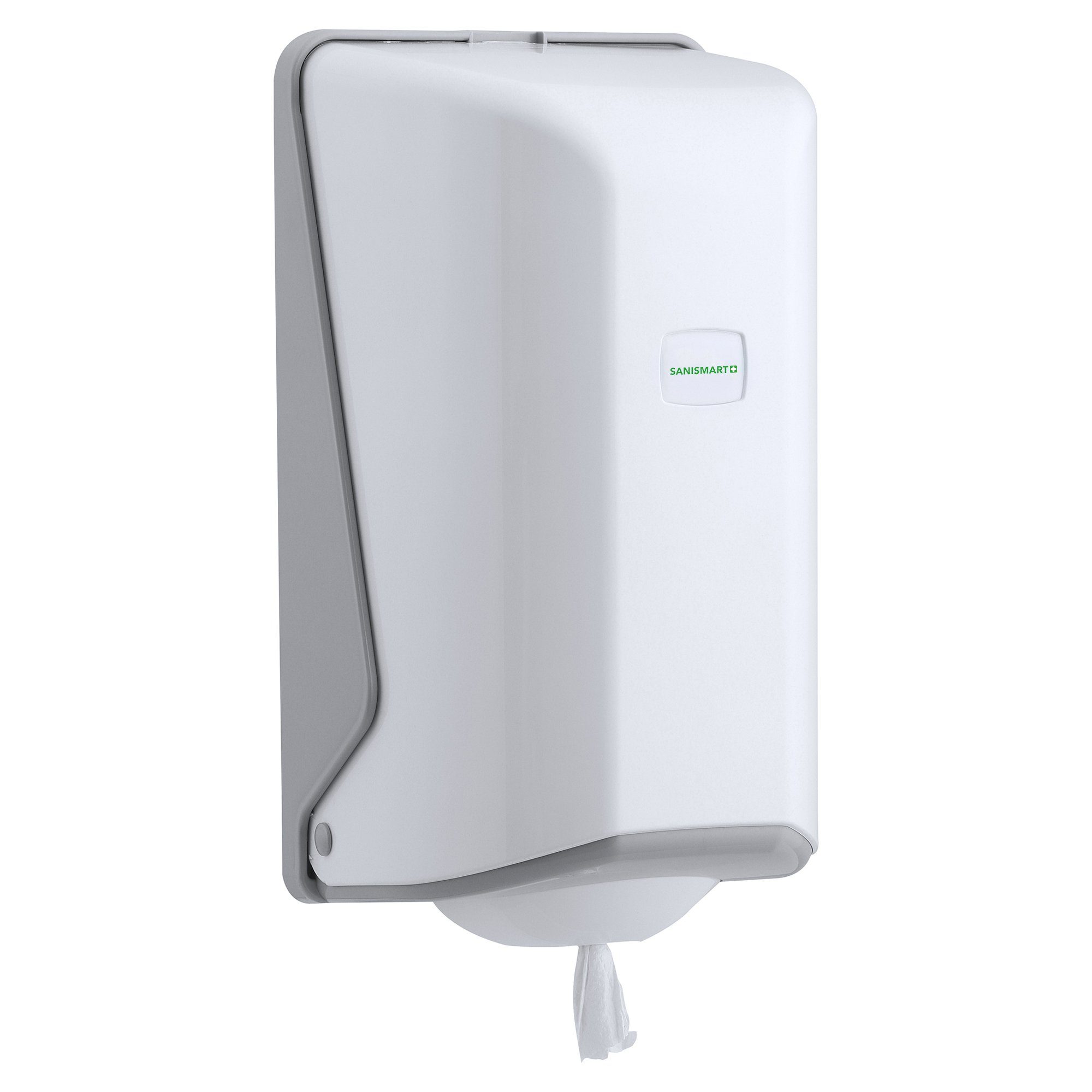 Der SANISMART Rollenpapierspender PRUNUS ist ein Papierspender zur Wandmontage und eignet sich für perforiertes Rollen-Handtuchpapier mit einer maximalen Höhe von 23 cm und einem maximalen Durchmesser von 14 cm. Der Papierspender mit manueller Betätigung fasst eine Papierrolle und kann problemlos befüllt werden. Dank der Öffnung an der Unterseite lässt sich das Papier einfach entnehmen und durch die Perforierung des Papieres ohne großen Kraftaufwand abreißen.