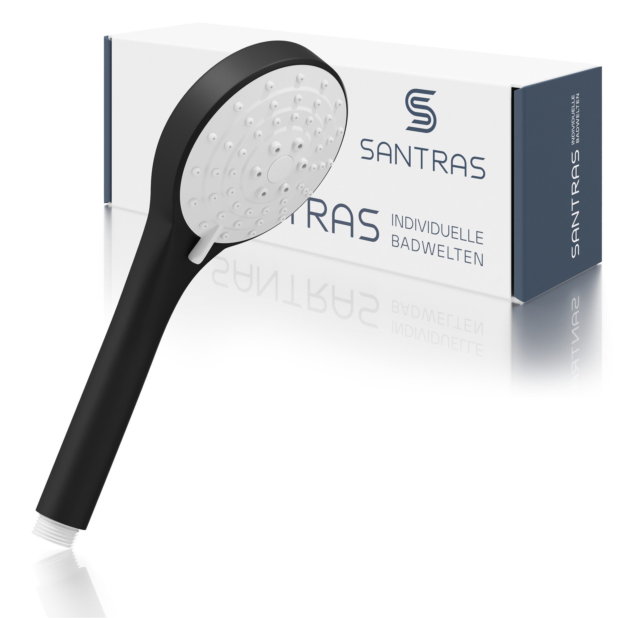 Santras Handbrause in Schwarz-Matt - dreifach verstellbarer Duschkopf mit Wassersparer