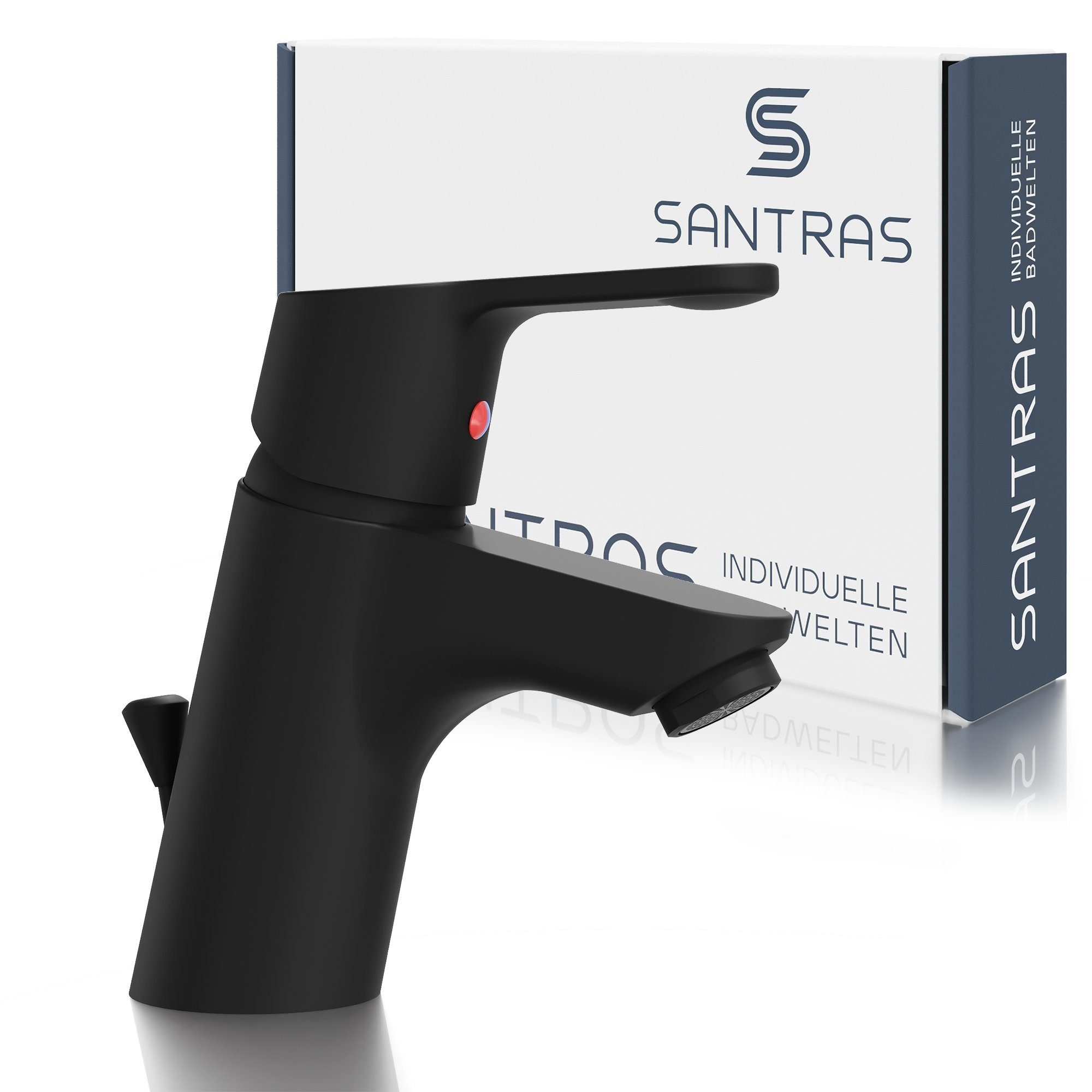 Santras Einhebel-Waschtischarmatur ausgestattet mit einer hochwertiger Ø 40 mm Keramik-Kartusche, flexiblen Anschlussschläuchen 35 cm, Schnellbefestigungsset und Zugstange für Waschtische mit Überlauf (ohne Ablaufgarnitur geliefert). Die Armatur besteht aus hochwertigem Messing mit einem Hebel aus Metall und einem hochwertiger Strahlregler. Die Beschichtung der Armatur ist mit einem Lack versiegelt, der für eine lange Lebensdauer sorgt. Der Armatur liegt eine ausführliche Montageanleitung bei, damit die Montage für jeden möglich ist.