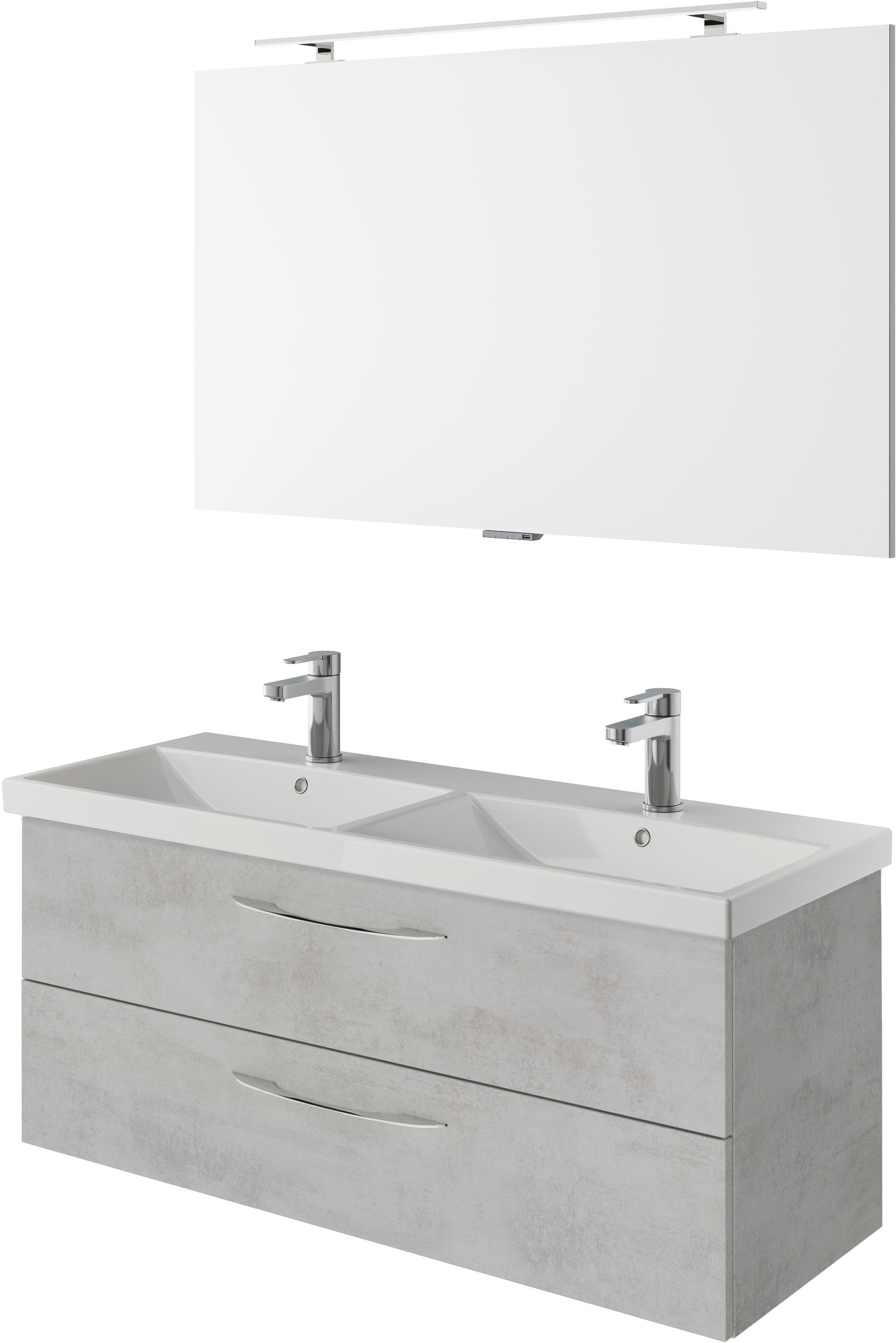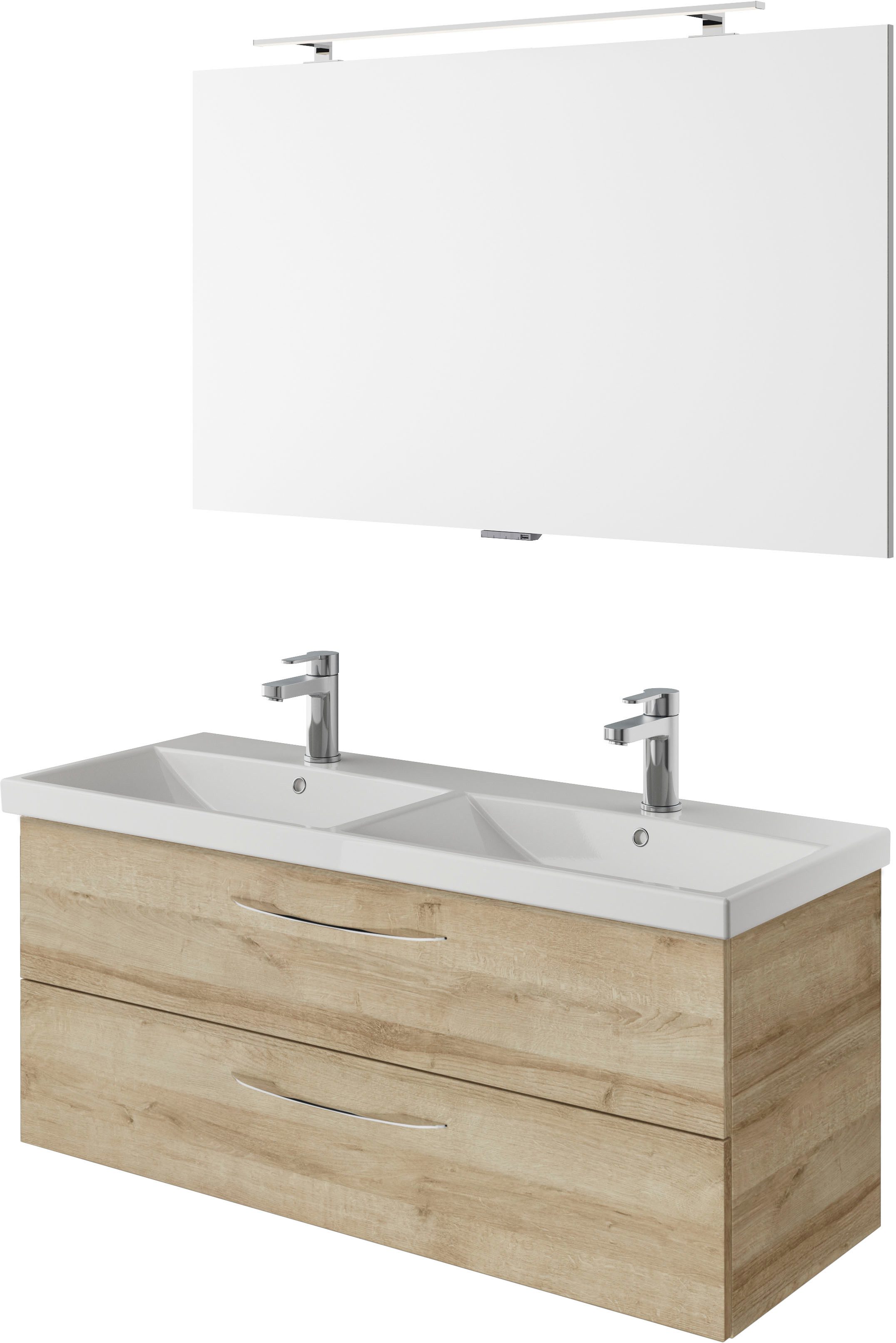 | Set beinhaltet | Keramik-Doppelwaschtisch, Waschtischunterschrank, Spiegel |