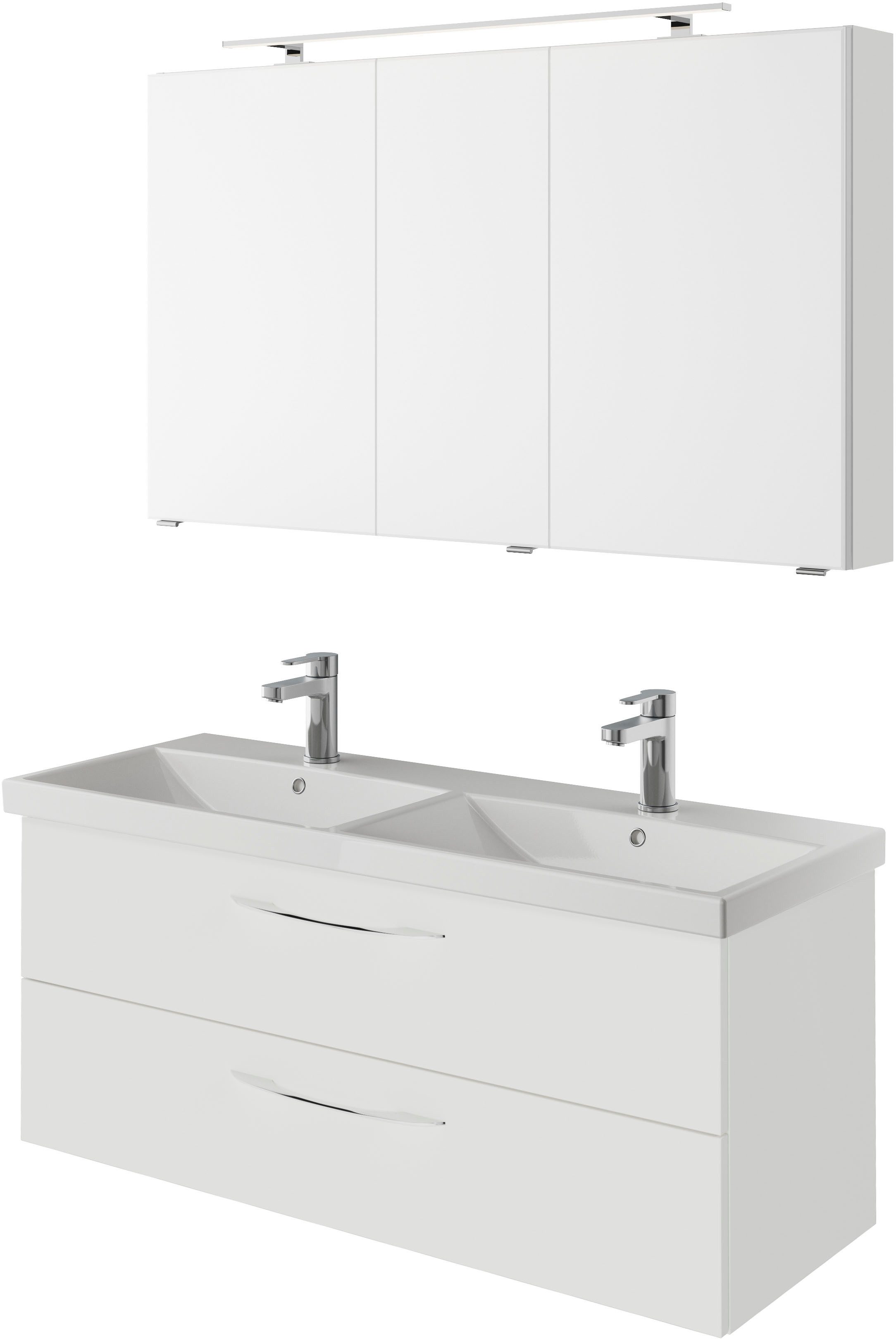 | Set beinhaltet | Keramik-Doppelwaschtisch, Waschtischunterschrank, Spiegelschrank |