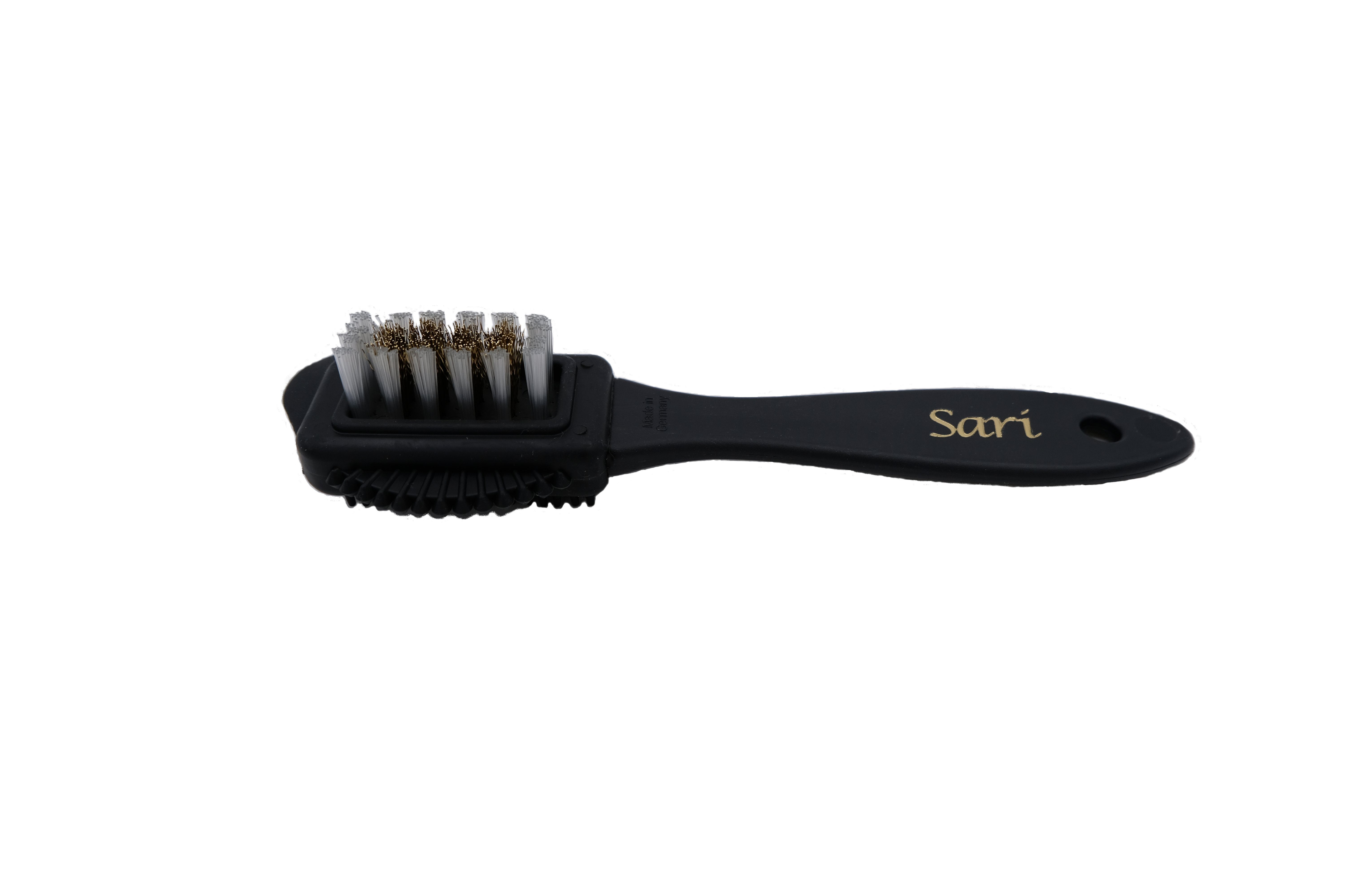 Sari Combibürste für Wild- und Rauleder Die hochwertige Sari Combi Wild- und Raulederbürste mit einer Länge von ca. 15,5 cm. Sie eignet sich zum reinigen von Wild- und Rauleder. Sie besteht aus einer Kombination aus Nylon und Messing auf der einen Seite und Gumminoppen auf der anderen Seite. Am Rand hat es einen hervorgehobenen Grad zum entfernen von groben Dreck und Schmutz. Sie ist ca. 15,5 cm lang und 4 cm breit und passt somit perfekt in jede Hand. Die Bürste wird ausschließlich in Deutschland gefertigt. Die Entwicklung unsere Sari Produkte entsteht aus einer langjährigen Erfahrung, hohen Qualitätsansprüchen und den Gedanken der Nachhaltigkeit.