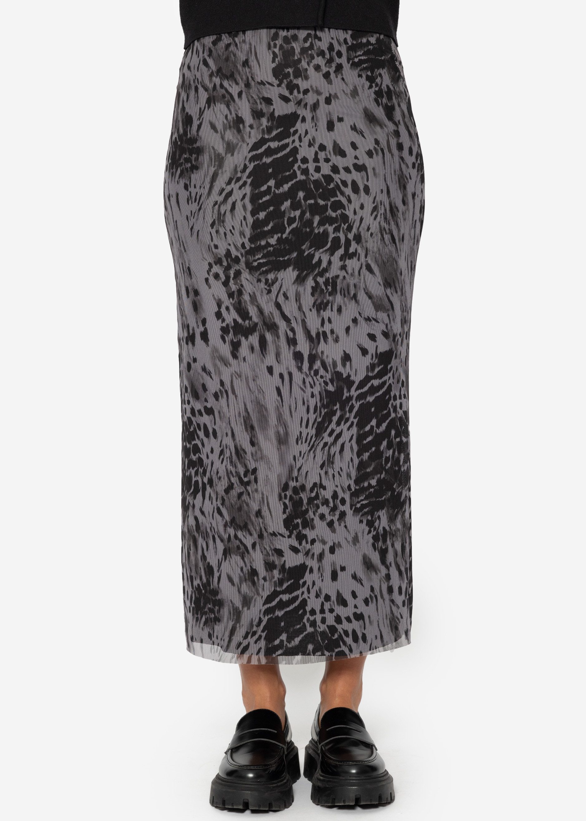 | Besondere Merkmale | Fließender Rock in Animalmuster mit Unterrock und Gummibund Braun Grau |