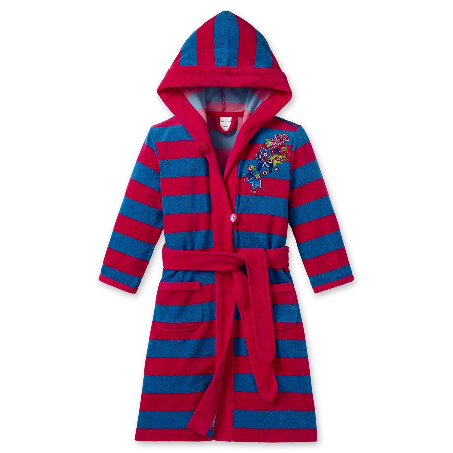 Kuschlig, flauschiger Bademantel mit Kapuze, einem Gürtel und dem tollen Aufnäher an der Brust. Bunte Ringel, die große Kapuze, ein Bindegürtel, Taschen und die farbenfrohe "Nordzauber"-Stickerei auf der Brust machen aus dem Bademantel eine echten Eyecatcher, der sich in hochwertigem Frottee wunderbar weich auf der Haut anfühlt. Der Bademantel lässt sich vorne am Kragen einfach mit einem Knopf öffnen und schließen.