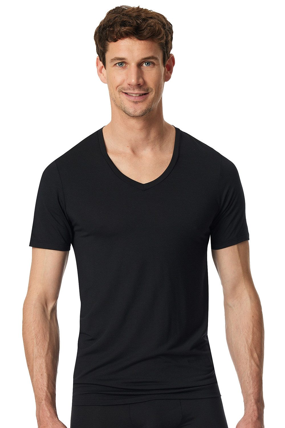 - T-Shirt mit V-Ausschnitt, kurzer Arm - spezielle Ausrüstung für ein andauerndes Frischegefühl, Körpergerüche werden absorbiert und neutralisiert - leichtes, kaum spürbares Material in hochwertiger, elastischer Single-Jersey-Qualität - ein perfekter Begleiter an langen oder warmen Tagen - Material: 55 % Modal, 35 % Polyamid, 10 % Elasthan - Pflegehinweis: Maschinenwäsche bis 40°C, Buntwäsche, schonende Trocknung, nicht heiß bügeln