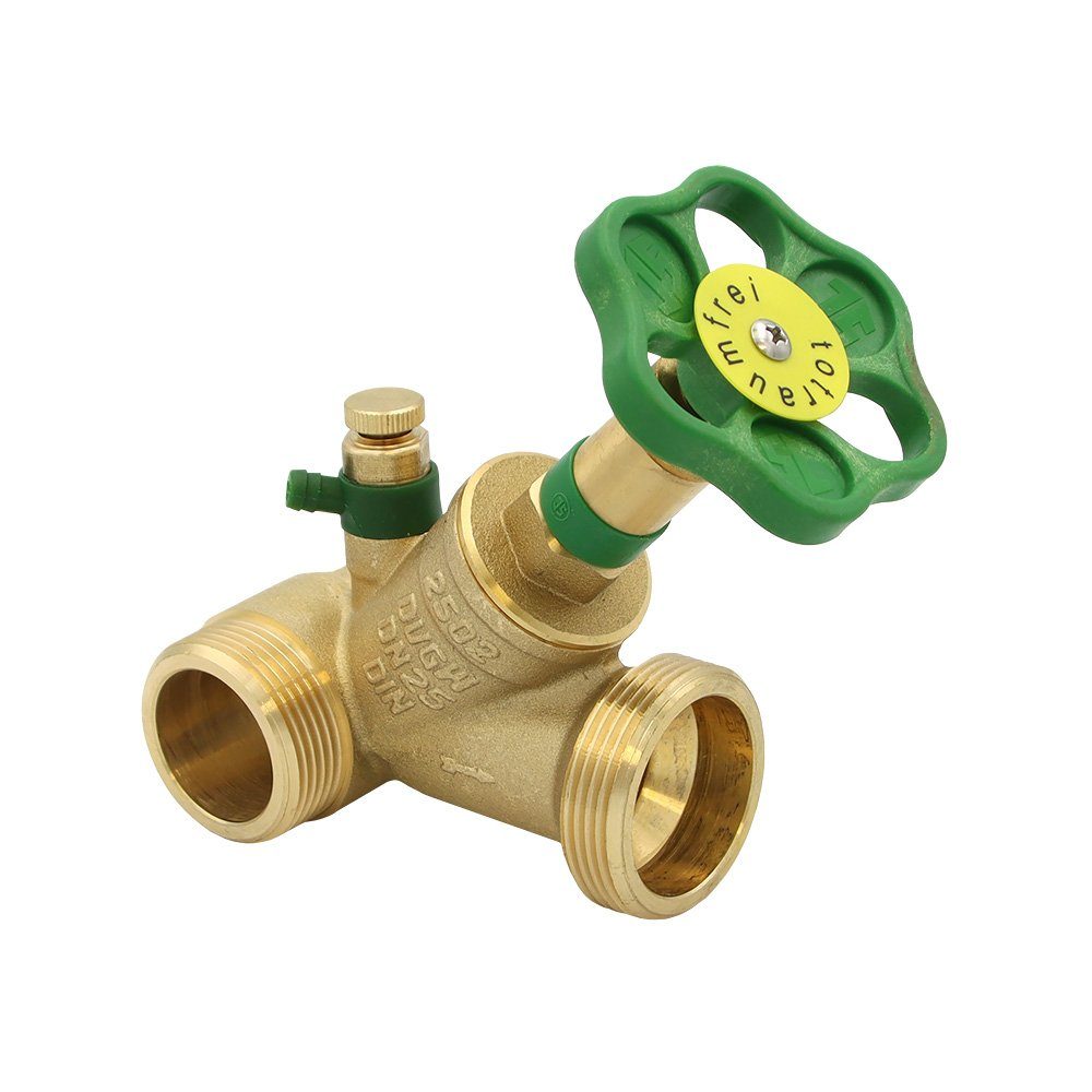 Abzweig-T-Ventile sind zur links- oder rechtsseitigen Erweiterung unserer Wasser-Kompaktverteiler geeignet. Sie eignen sich auch zur individuellen Wasserverteilung in horizontalen Rohren. Die Dichtung für den flachdichtenden Anschluss wird im linken Innengewinde eingebaut, zur Abdichtung kann hier auch Hanf- oder PTFE-Dichtmittel verwendet werden. Der Gewindeanschluss rechts und der Auslassgewindeanschluss oben sind mit Flachdichtungen ausgestattet.
