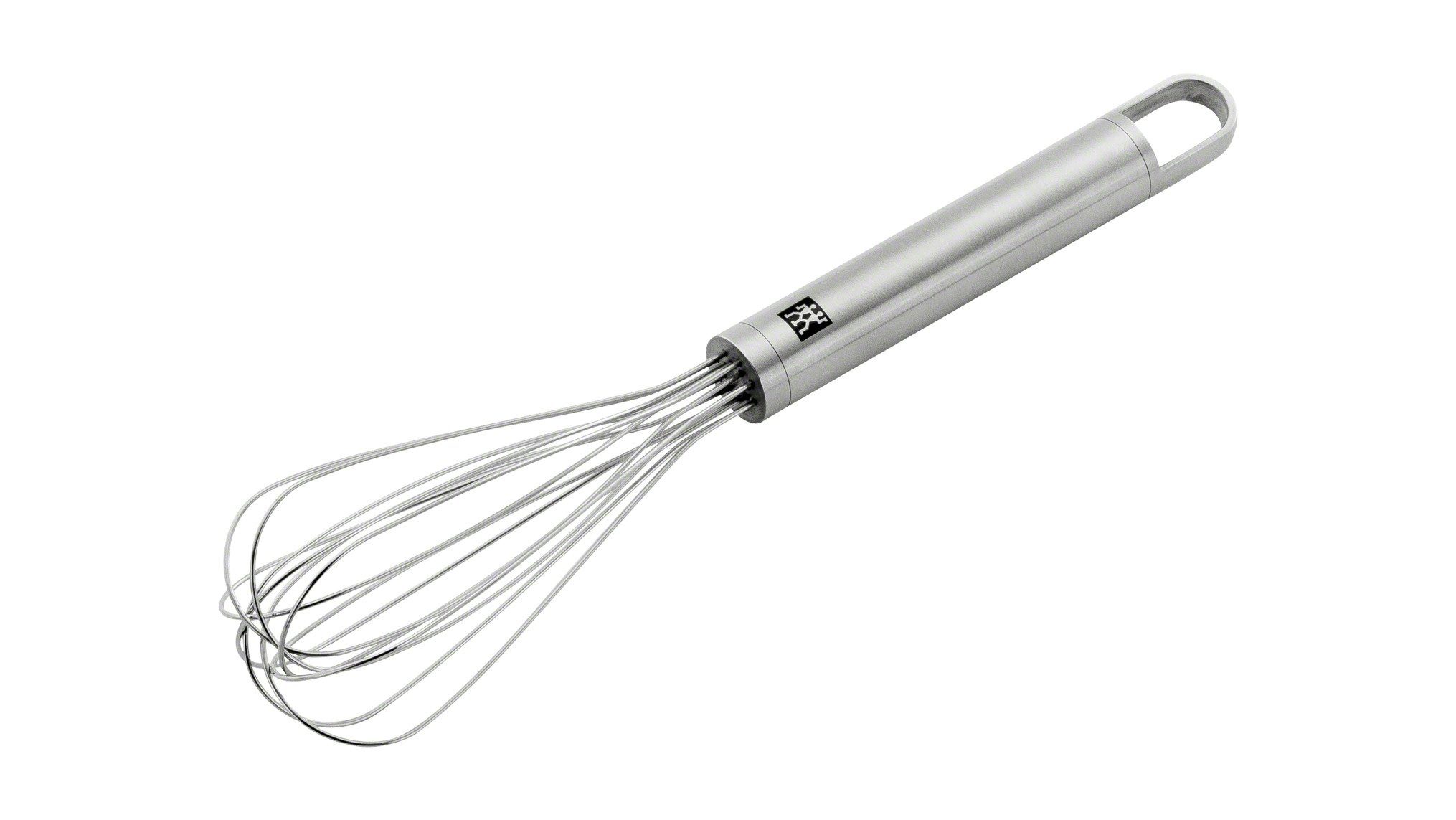 Zwilling Schneebesen, klein ZWILLING® Pro 240 mm 9 4/9 " Der kleine Schneebesen aus der Serie Pro von ZWILLING ist der ideale Küchenhelfer für alles, was locker luftig oder besonders cremig gelingen soll. Auf den ersten Blick fällt das minimalistische Design von den Designern Matteo Thun und Antonio Rodriguez ins Auge. Und beim ersten Einsatz wird klar: Die Funktionalität steht der Formschönheit in nichts nach. So liegt der ergonomische Griff bemerkenswert gut in der Hand und die tropfenförmig ineinanderlaufenden Drähte sorgen für beste Ergebnisse. Die Arbeit mit dem Rührbesen geht leicht von der Hand und Sie arbeiten auch über längere Zeit nahezu ermüdungsfrei. Minimalistisches Design von Matteo Thun und Antonio Rodriguez Hergestellt aus hochwertigem, rostfreiem Edelstahl Ergonomisch geformte Griffe für ermüdungsfreies Arbeiten mit fließenden Übergängen für besondere Hygiene Innovative Konstruktion für eine besonders schaumige Konsistenz Acht sternförmig angeordnete Edelstahlschlaufen sorgen für einen erhöhten Luftdurchsatz Durch die symmetrische Anordnung kann der Schaumbesen senkrecht abgestellt werden Teig- und Saucenreste laufen besonders einfach ab. Spülmaschinengeeignet. Geeignet zum Aufschlagen, Zutaten vermengen oder Durchrühren