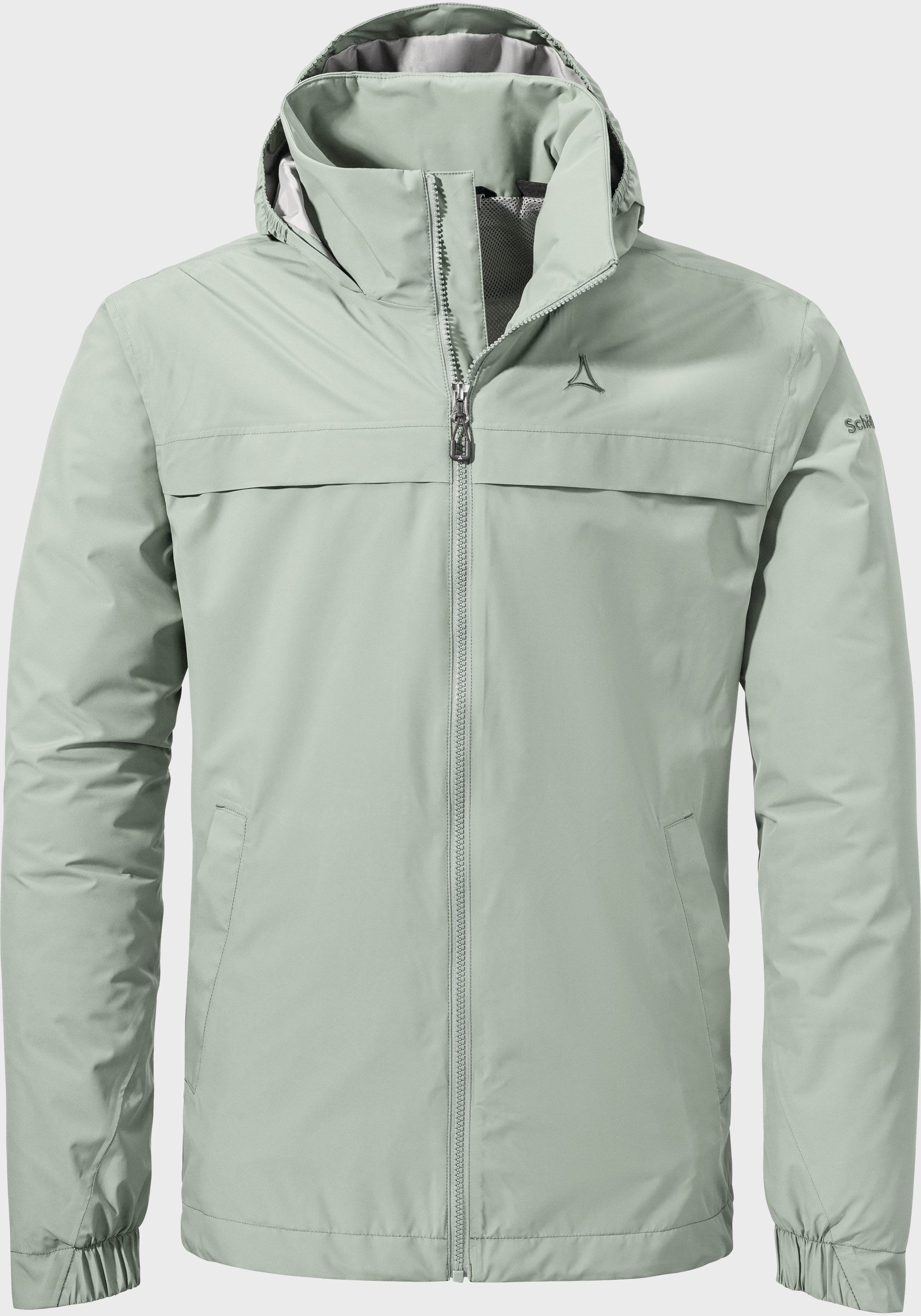 Diese Regenjacke vereint Funktionalität und Stil auf eine besondere Weise. Wasserdicht mit einer 10.000 mm Wassersäule und einer hohen Atmungsaktivität von 10.000 MVTR, hält sie Dich auch an regnerischen Tagen trocken. Der hochschließende Kapuzenkragen mit elastischem Einsatz sorgt für optimalen Schutz, während der gerundete Stufen-Saum, der vorne kürzer ist als hinten, und das dekorative Faltendetail in der Taille für einen modernen Look sorgen. Zwei Leistentaschen mit verdeckten Reißverschlüssen und eine praktische Innentasche aus Netzfutter bieten ausreichend Stauraum.