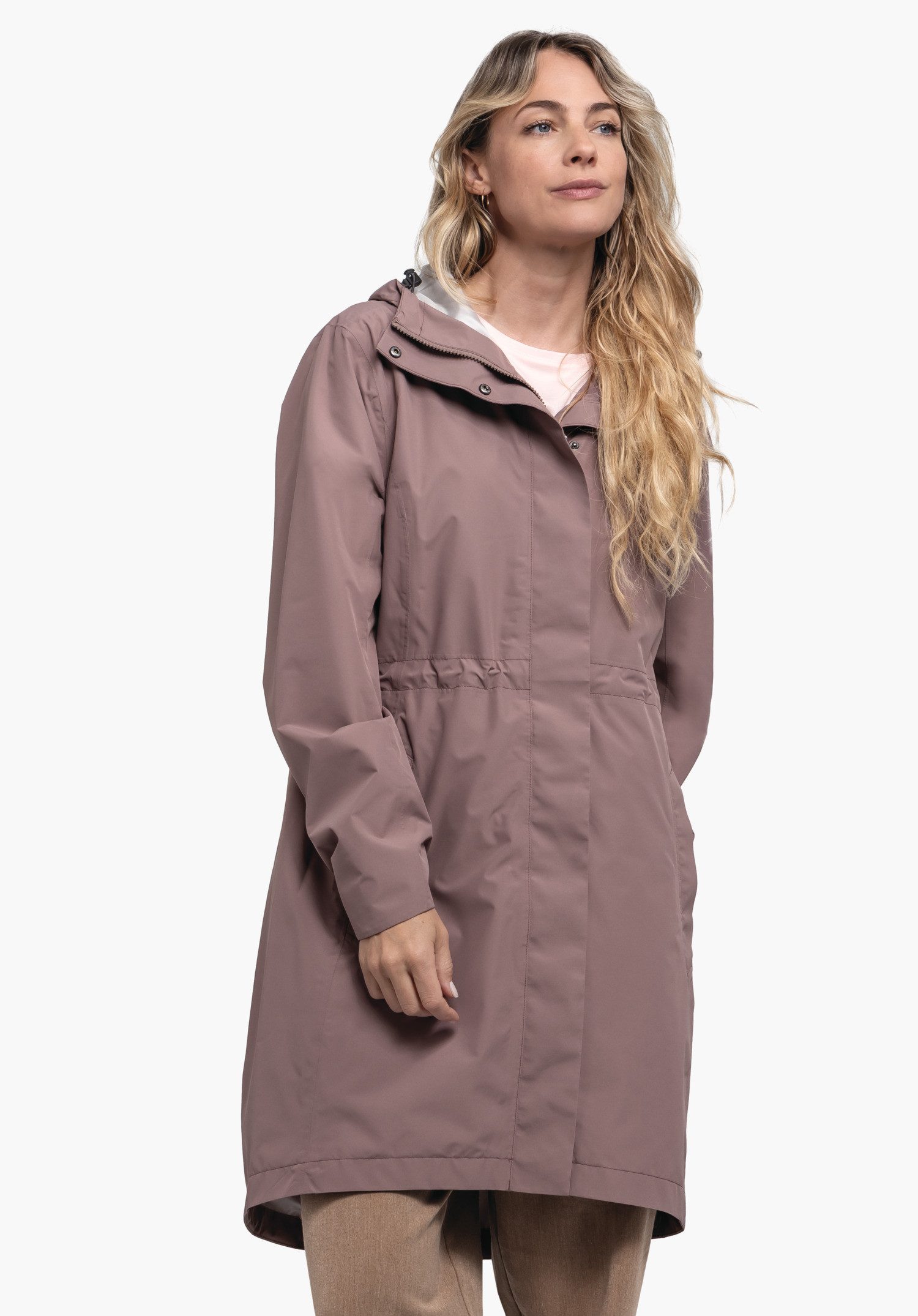 Schlicht und funktional: Dieser zeitlose Regenmantel bietet mit 10.000 mm Wassersäule und hoher Atmungsaktivität besten Komfort bei Regenwetter. Der hochschließende Kapuzenkragen, der weitenregulierbare Ärmelsaum und der Taillenzug sorgen für optimalen Sitz und Bewegungsfreiheit. Die zwei Leistentaschen mit unsichtbaren Reißverschlüssen und die zusätzlichen Innentaschen bieten reichlich Stauraum für unterwegs. Der gerundete Stufen-Saum verleiht dem Mantel eine elegante Form, während reflektierende Elemente Deine Sichtbarkeit bei Dunkelheit erhöhen. Hergestellt aus recyceltem Material – für verlässlichen Wetterschutz mit Stil.