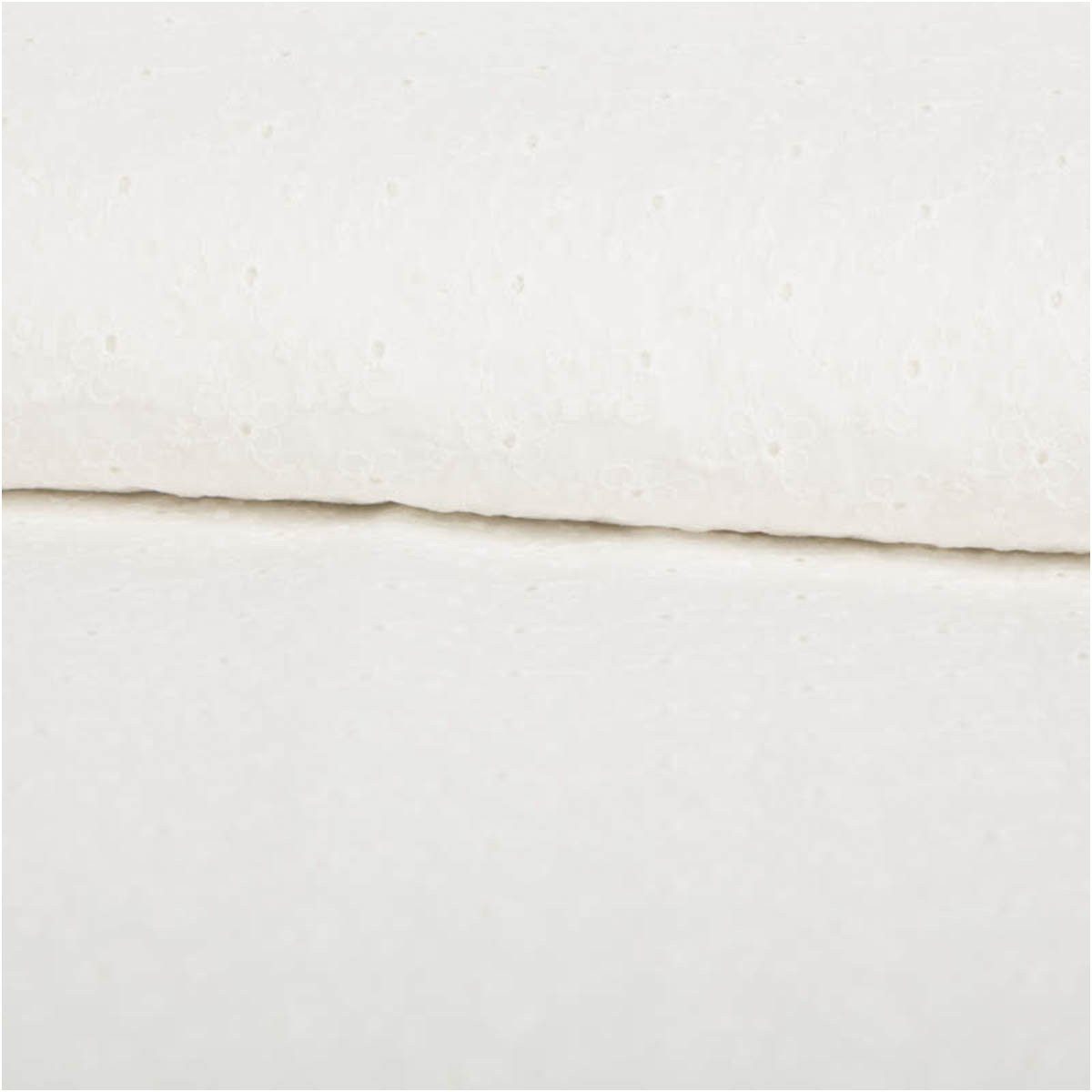 Blümchenstickerei mit Lochmustern: Filigrane Blumenmotive und Lochstickerei-Details erzeugen eine romantische Broderie-Anglaise-Optik für verspielte Designs.