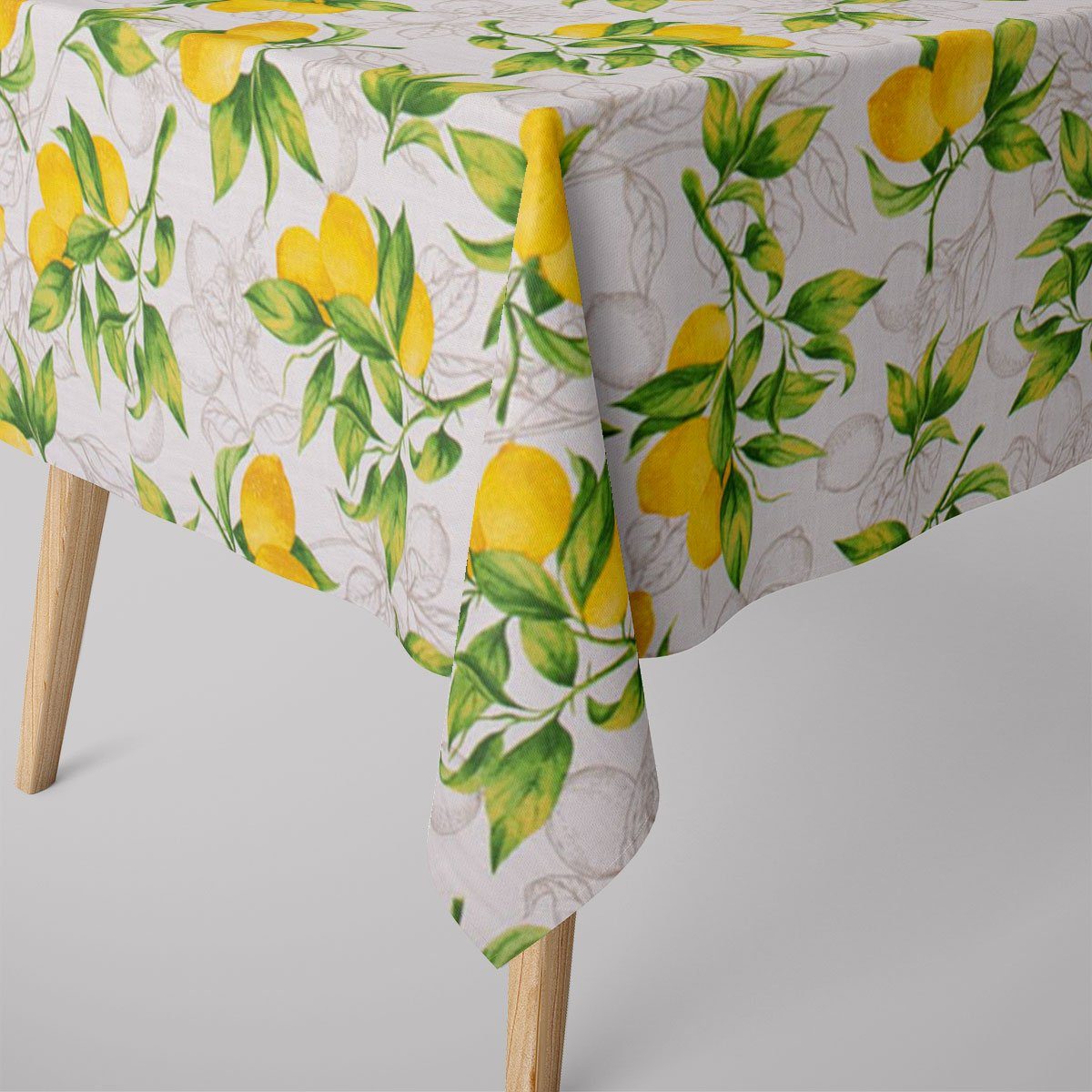 NATÜRLICH UND MODERN: Die leuchtenden Zitronen an den saftig, grünen Zweigen zaubern ein mediterranes Feeling auf die Tischdecke und sorgen für ein tolles Raumgefühl.