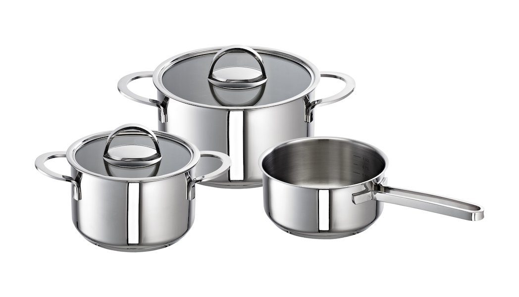 Bei dem dreiteiligen Mini-Set Mabel verbindet sich rigorose Funktionalität mit geradlinigem Design. Glasdeckel zum energiesparenden Sichtkochen, wärmeisolierende Profilgriffe und pflegeleichter Edelstahl machen dieses Ensemble zu einer idealen Grundausstattung, auch für Kochanfänger.