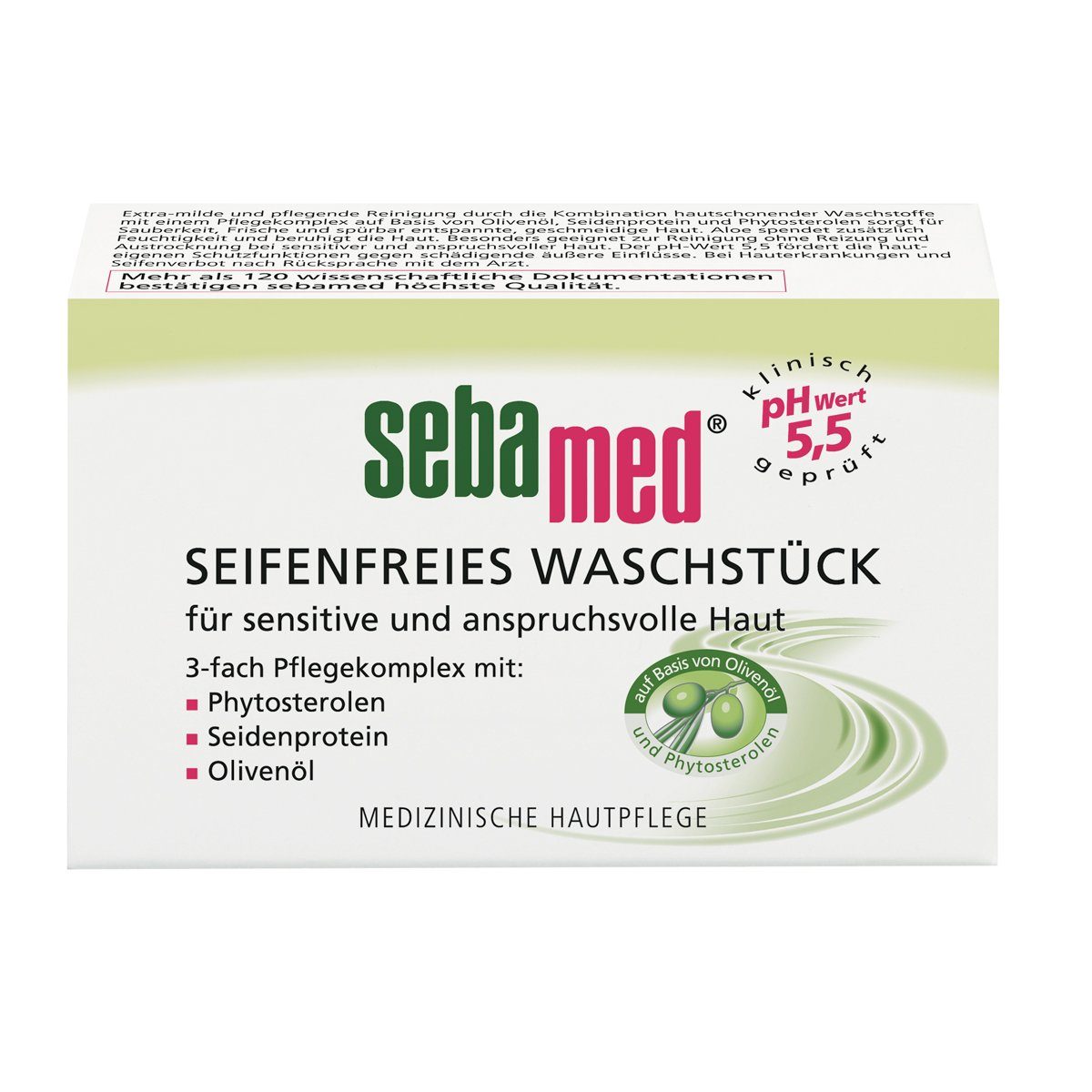 Mit einem Pflegekomplex auf Basis von Olivenöl, Seidenprotein und Phytosterolen sorgt das sebamed Seifenfreie Waschstück Olive für Sauberkeit, Frische und spürbar entspannte, geschmeidige Haut. Die Pflegeformel mit Aloe vera trägt zur Feuchtigkeitsbalance und Hautberuhigung bei. Besonders geeignet zur Reinigung ohne Reizung und Austrocknung bei sensitiver und anspruchsvoller Haut. Der pH-Wert 5,5 fördert die hauteigenen Schutzfunktionen gegen schädigende äußere Einflüsse.
