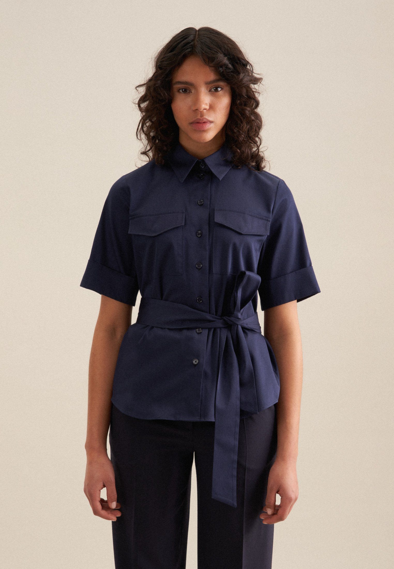 Feminin und elegant: Ihre Silhouette wird stilvoll inszeniert mit der Hemdbluse von Seidensticker aus der "The Connecting Neutrals" Kollektion. Sie ist ein vielseitiger Begleiter, der sich ideal für Freizeit oder Büro eignet und zu vielen unterschiedlichen Looks passt. Satin stellt sich als ideale Leinwand für Ihre ganz eigenen Outfit-Variationen dar. In Kombination mit einer Baumwollmischung ist sie besonders ansprechend. In moderner Passform liegt die Hemdbluse leger und weniger eng an und schafft somit optimalen Tragekomfort. Durch das Uni-Muster ist Ihr neues Kleidungsstück elegant und zugleich modisch. Klassischer Chic gepaart mit modernem Selbstbewusstsein - eine edle Bluse für viele Gelegenheiten. Bei dieser Kurzarm-Hemdbluse werden an warmen Tagen Stilsicherheit und Eleganz besonders hervorgehoben. Besonders unterstrichen wird der feminin-klassische Charakter durch einen Hemdblusenkragen. Als Detail sind zudem edle Perlmuttknöpfe aufgenäht worden.