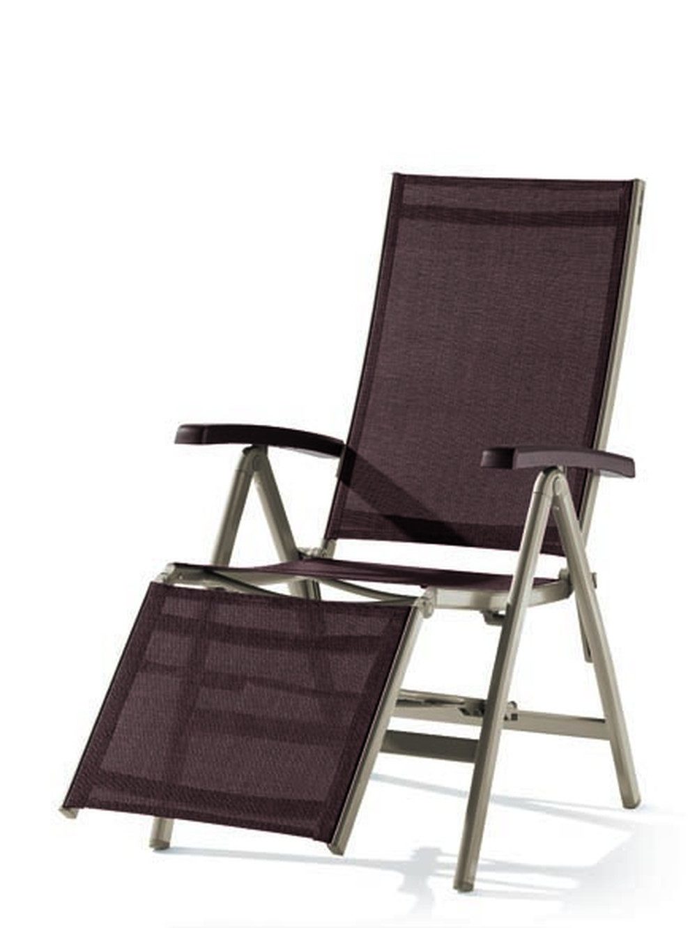 Aluminiumgestell in Champagner mit strapazierfähigem Kunstfasergewebe in Mocca.