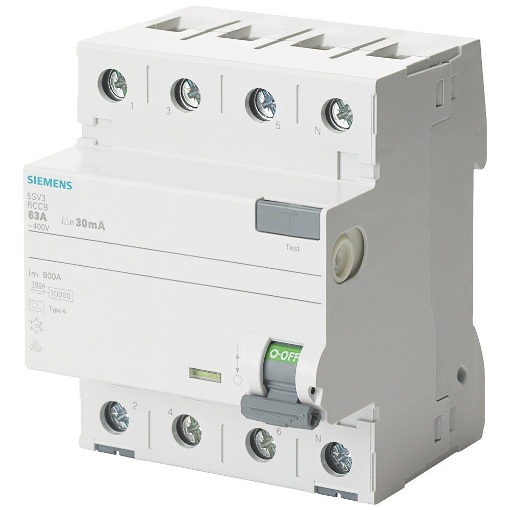 FI-Schutzschalter, 4-polig, Typ A, kurzzeitverzögert, In: 25 A, 30 mA, Un AC: 400 V FI-Schutzschalter SENTRON 5SV3 für den umfassenden Schutz für Personen und Sachwerte vor elektrischem Schlag.