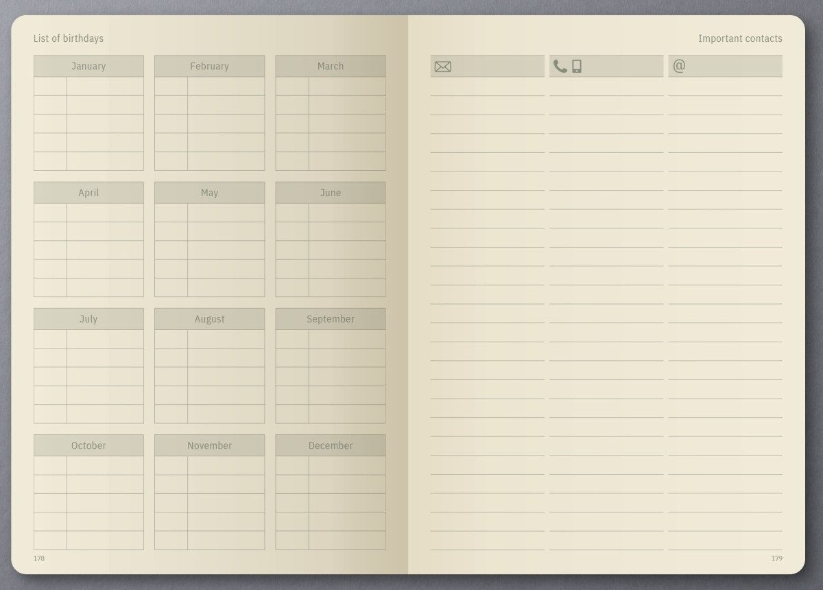Viele hilfreiche Extras wie Monatsübersichten, Ziel- und Reflexionsseiten, Finanzplaner, Passwortlisten