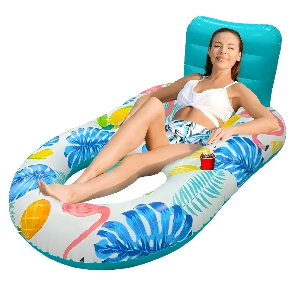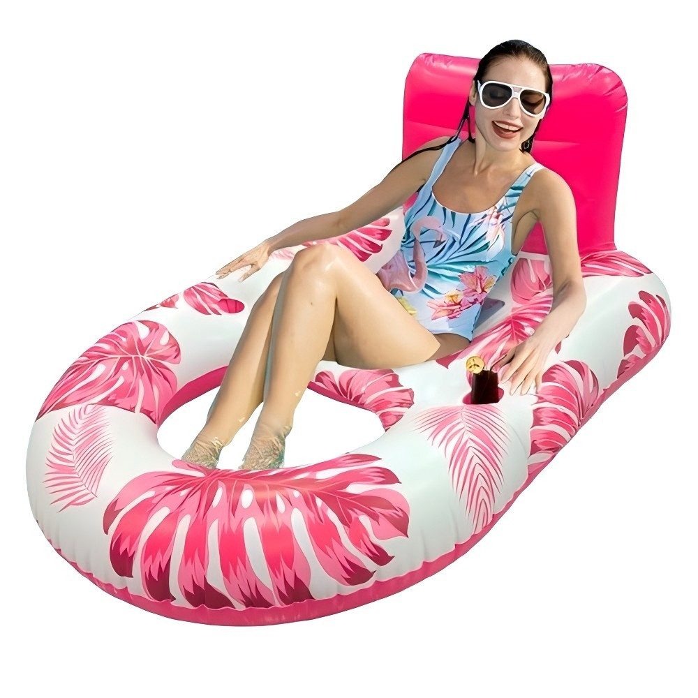 Diese aufblasbare Schwimmliege ist der perfekte Begleiter für heiße Sommertage im Pool, am Strand oder See. Mit tropischem Flamingo-Design in Pink oder Blau ist sie nicht nur bequem, sondern auch ein echter Hingucker. Die ergonomische Rückenlehne bietet besten Komfort, während der integrierte Getränkehalter Ihr Lieblingsgetränk stets griffbereit hält. Ob als chillige Liegeinsel oder als witziges Sommergeschenk – diese Luftmatratze kombiniert Stil, Funktionalität und Sommerfeeling.