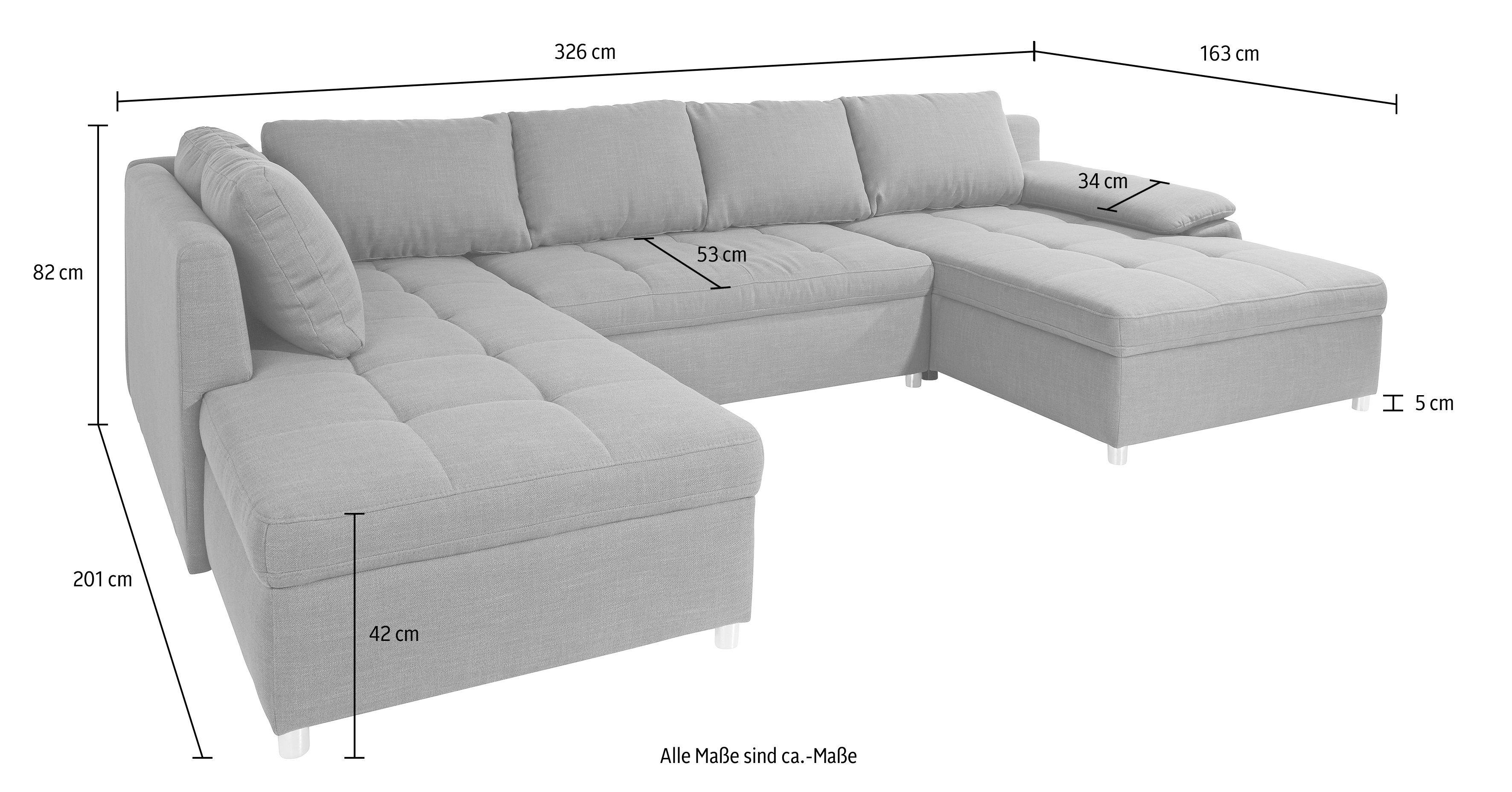Diese Wohnlandschaft »Top Bilbao U-Form« von sit&more kommt mit dem passenden Rückenkissen daher, das das Sitzen bequemer macht und das Sofa dekoriert. Sowohl rechts als auch links kann die Recamiere montiert werden. Die maximale Belastbarkeit pro Sitzplatz liegt bei einem Gewicht von 110 Kilogramm. Der hochwertige Strukturstoff ist pflegeleicht und hautsympathisch und überzeugt durch seine Komforteigenschaften.