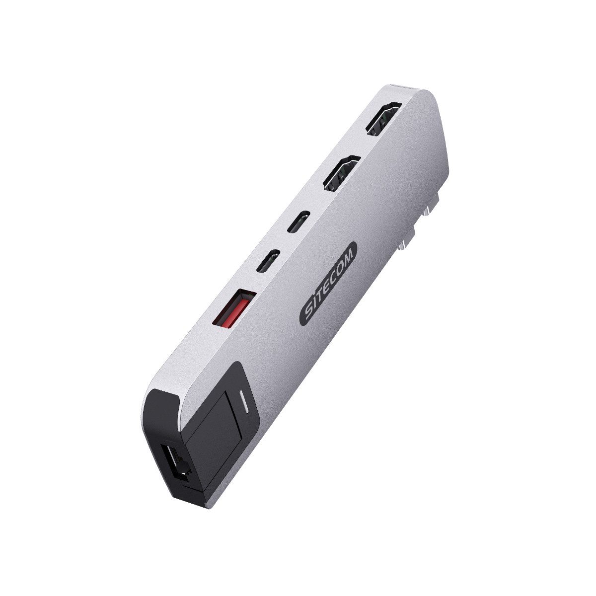 Der Sitecom AC-210 ist ein leistungsstarker 6-in-2-Multiport-Hub, entwickelt für MacBook Pro Modelle mit M1-, M2- oder M3-Chip. Mit zwei HDMI-Anschlüssen (bis 4K 60 Hz), USB-C mit Power Delivery (100 W), USB-A 3.2, Ethernet (1000 Mbit/s) und modernster USB-3.2-Technologie ermöglicht er ultraschnelle Datenübertragungen mit bis zu 10 Gbit/s. Das elegante Aluminiumgehäuse ist farblich perfekt auf dein MacBook abgestimmt und in Schwarz, Grau und Silber erhältlich. Ideal für Büro, Homeoffice oder unterwegs: Schließe mehrere Geräte gleichzeitig an, lade dein MacBook auf und erweitere dein Setup mit maximaler Effizienz – alles über nur zwei Thunderbolt-Ports.